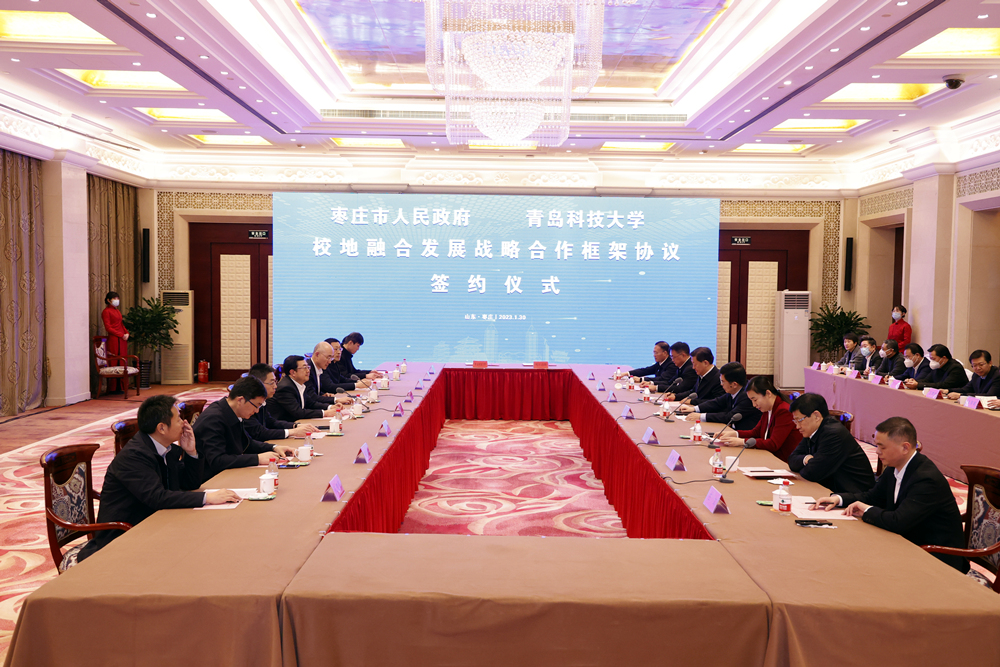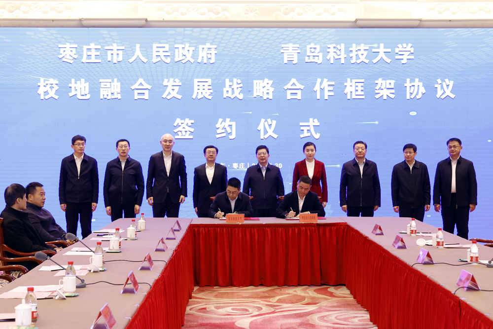 1月30日下午,学校与枣庄市人民政府校地融合发展战略合作协议签约仪式在枣庄举行。山东省副省长、枣庄市委书记陈平,市委副书记、市长张宏伟,市委副书记、宣传部部长孙起生,市委常委、组织部部长、统战部部长包希安,市委常委、秘书长赵刚,副市长左文,学校党委书记李兴伟,校长陈克正,党委常委、副校长吕万翔,校务委员聂广明出席签约仪式。