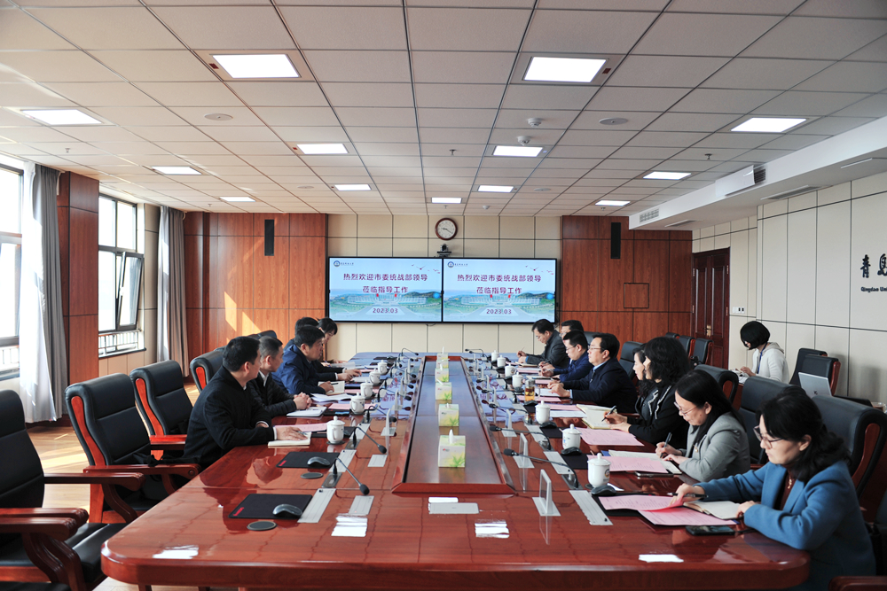 3月9日,青岛市委统战部分管日常工作的副部长杨长军一行来beat365官方网站调研。学校党委书记李兴伟,党委副书记沈文青出席座谈会。