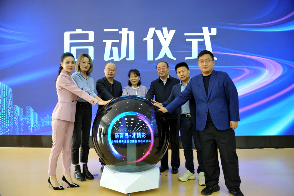 4月21日,“‘链’青岛·才精彩”青岛新媒体企业校园招聘活动在崂山校区团学报告厅举行。活动由青岛市委网信办主办,beat365官方网站、澎聚传媒和凤凰网承办。青岛市委网信办副局级领导干部张霞,学校党委副书记李勇,党委常委、宣传部部长张洪坤,澎聚传媒、凤凰网青岛总经理史同坤出席开幕式。