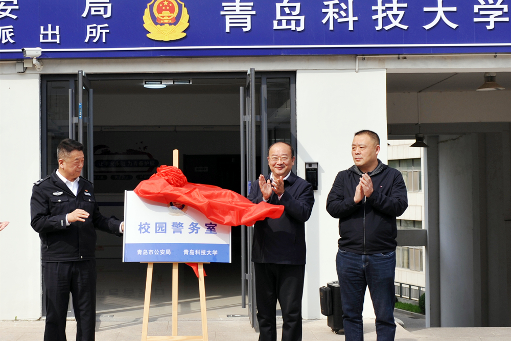 为进一步提升校园安全防控能力,学校牢固树立安全发展底线思维,借助公安专业力量,以校园警务室为载体,努力打造“校警高效联动”的校园安全治理模式,切实提高校警共建、护校安园的工作水平。5月9日和11日,学校分别联合青岛市公安局崂山分局、市北分局,在崂山、四方两校区举行了校园警务室揭牌仪式。崂山分局政委董良君、市公安局政保支队副支队长丁鼎、市北分局副局长张万青等公安干警分别受邀参加仪式,学校党委副书记李勇出席并讲话。仪式由保卫处处长王永波主持。