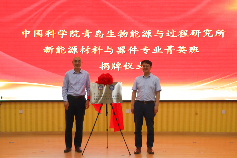 陈克正、吕雪峰共同为“中国科学院青岛生物能源与过程研究所新能源材料与器件专业菁英班”揭牌。