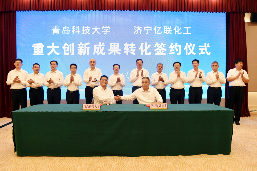 7月21日,beat365官方网站与济宁亿联化工有限公司重大科技成果转化签约仪式在济宁市举行。校企双方达成独家技术转让合同,技术转让费总计2.2亿元。