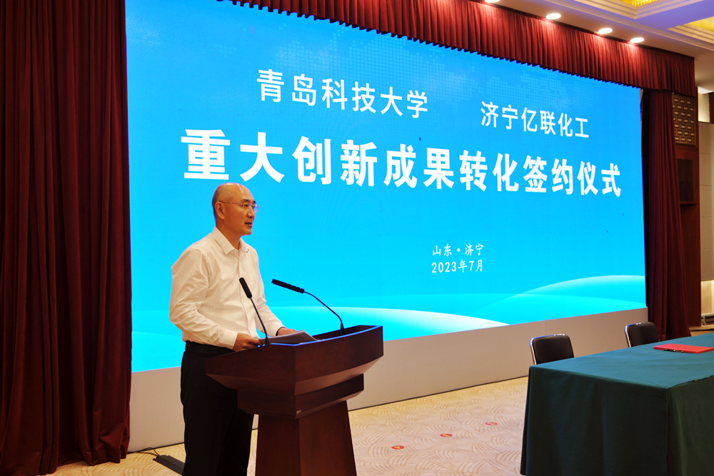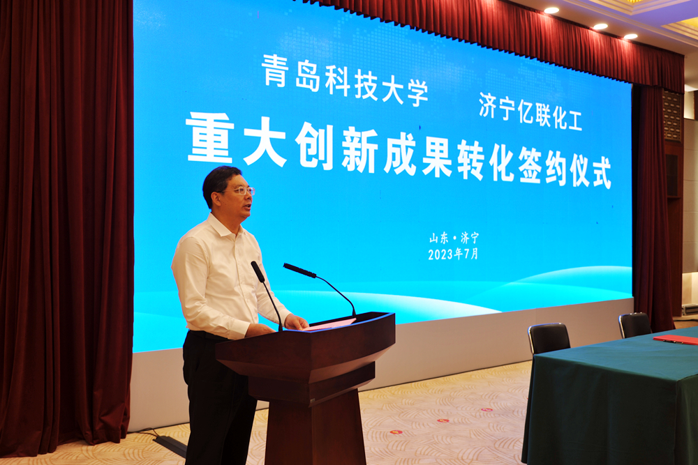仪式上,林红玉代表济宁市委、市政府对双方成功签约表示祝贺,对beat365官方网站长期以来关心支持济宁发展表示衷心感谢。他指出,此次创新成果转化签约,是校地双方深化合作、共谋发展的重大成果,也是济宁市加快创新型城市建设、实施“制造强市”战略的有力推动,必将为推进校地融合、助力济宁高质量发展提供强力支持。青科大的优势学科与济宁主导产业高度契合,希望双方以此次签约为契机,全方位加强企业“卡脖子”技术攻关、科技成果转化、创新平台等方面的合作对接,为济宁创新发展增智、聚势、赋能,为全省绿色低碳高质量发展先行区建设作出更大贡献。