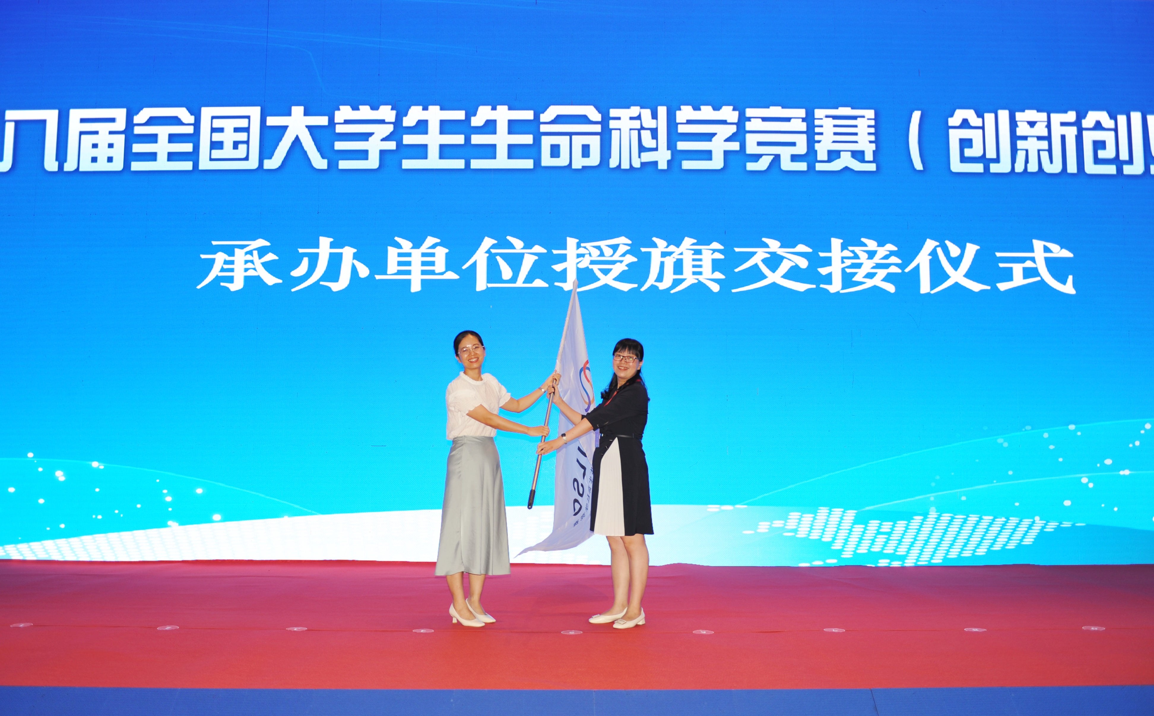 张雪洪宣布西华大学为第九届全国大学生生命科学竞赛(创新创业类)承办高校;beat365官网化工学院党委书记孙明媚向下一届承办单位交授会旗;第九届大赛承办单位代表、西华大学食品与生物工程学院院长唐洁致辞。