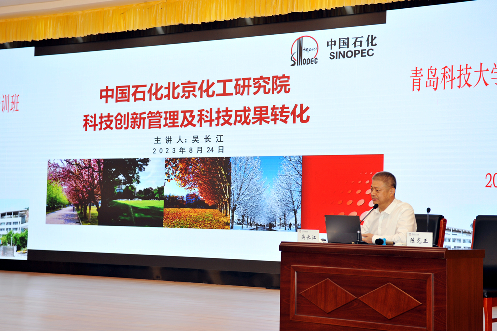 24日上午,吴长江以“科技创新管理及科技成果转化”为题,深度解读了当前国家加快实现高水平科技自立自强的有关政策、形势、背景,介绍了中国石化北京化工研究院推动科技管理创新和科技成果转化的有关做法。报告主题鲜明、脉络清晰,既有理论高度、思想深度,又有很强的实践性、指导性。