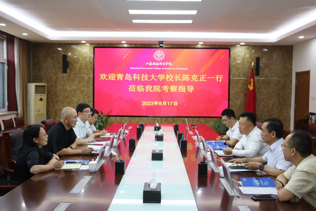 近日,校长陈克正一行赴山东科技职业学院考察交流,山东科技职业学院党委书记郑德前,党委副书记、院长刘福玉出席座谈交流活动。
