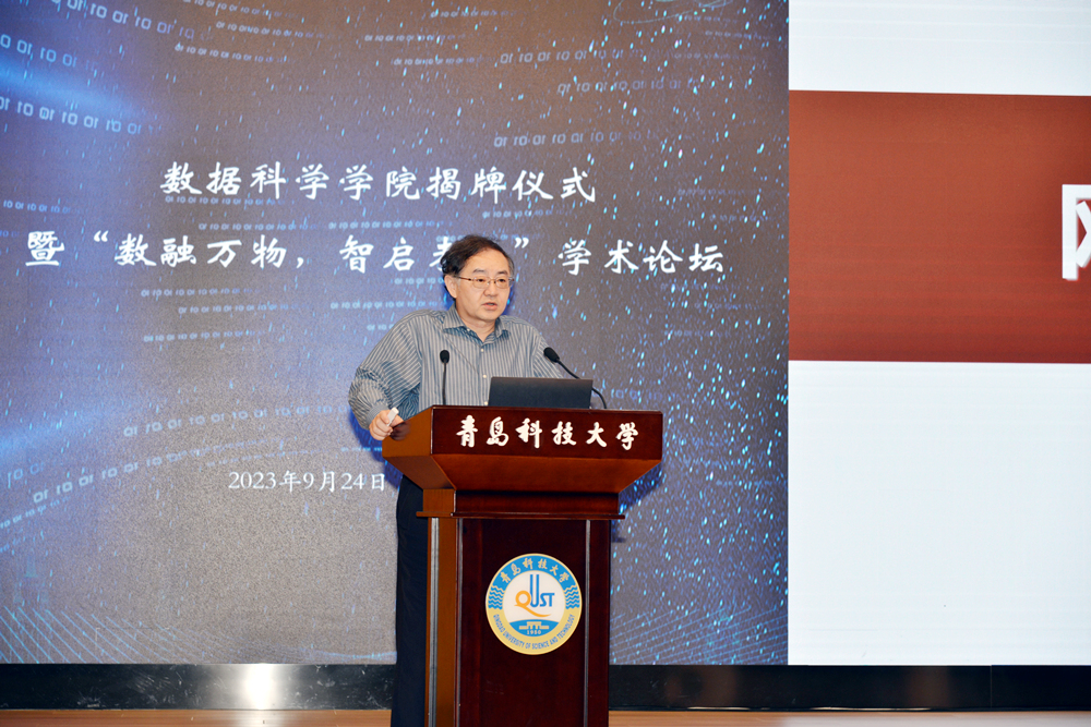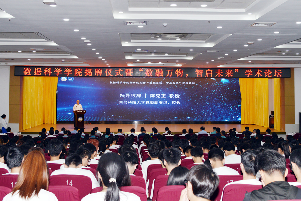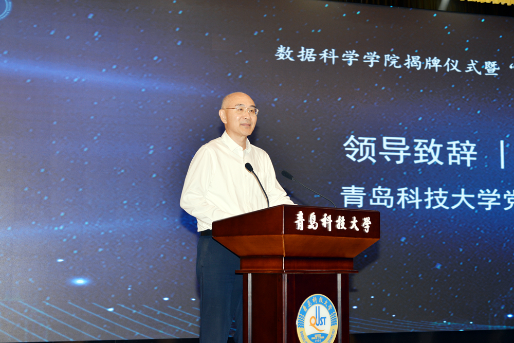 陈克正在揭牌仪式上介绍了学校基本情况及数据科学学院的发展历程。他指出,学校高度重视并主动对接数字中国战略和区域经济社会发展对大数据人才的迫切需求,不断加强数据科学学科专业建设,积极构建大数据人才培养体系。希望学院能够以此为契机,为数字青岛、数字山东、数字中国的建设贡献青科大智慧与力量。