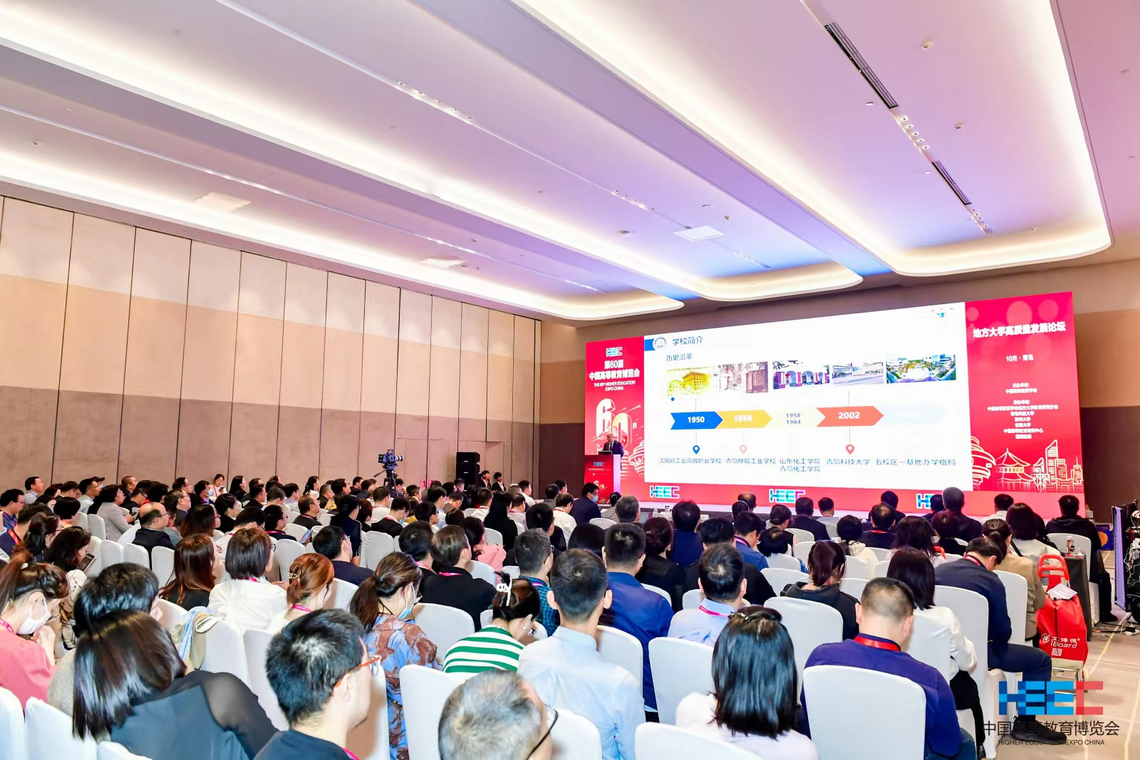 为深入学习贯彻党的二十大精神和习近平总书记关于建设教育强国的重要论述,探索地方大学面向国家、立足区域、服务行业的特色化高水平建设战略和举措,10月12日,由中国高等教育学会主办,中国高等教育学会地方大学教育研究分会、beat365官方网站、郑州大学、安徽大学等单位联合承办的地方大学高质量发展论坛在青岛红岛国际会议展览中心成功举办。该论坛是第60届中国高等教育博览会系列论坛之一,包含开幕式、主旨报告、“地方大学高质量发展”主题书记校长圆桌对话沙龙和“职普融通、产教融合、科教融汇”主题校企圆桌对话沙龙,来自全国各高等院校及科研院所的近500位领导专家参会。