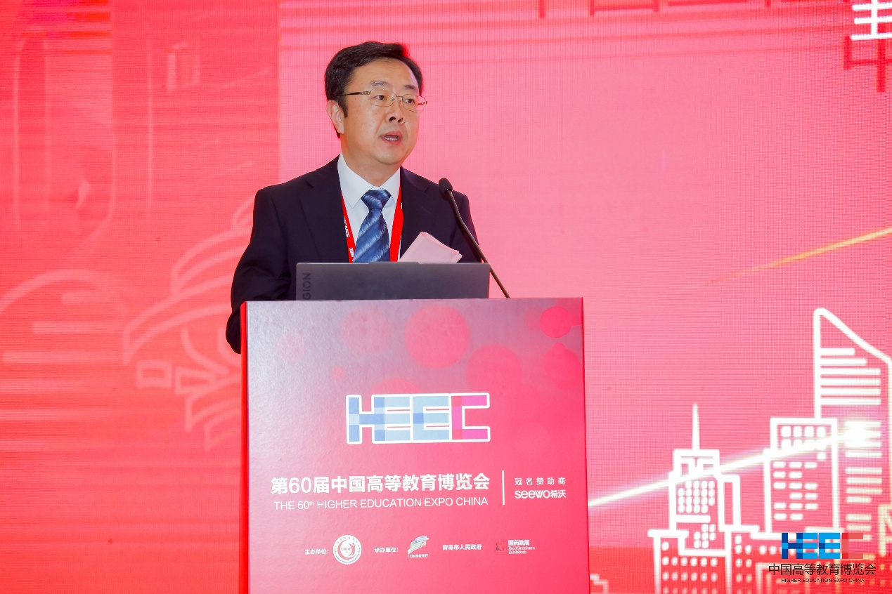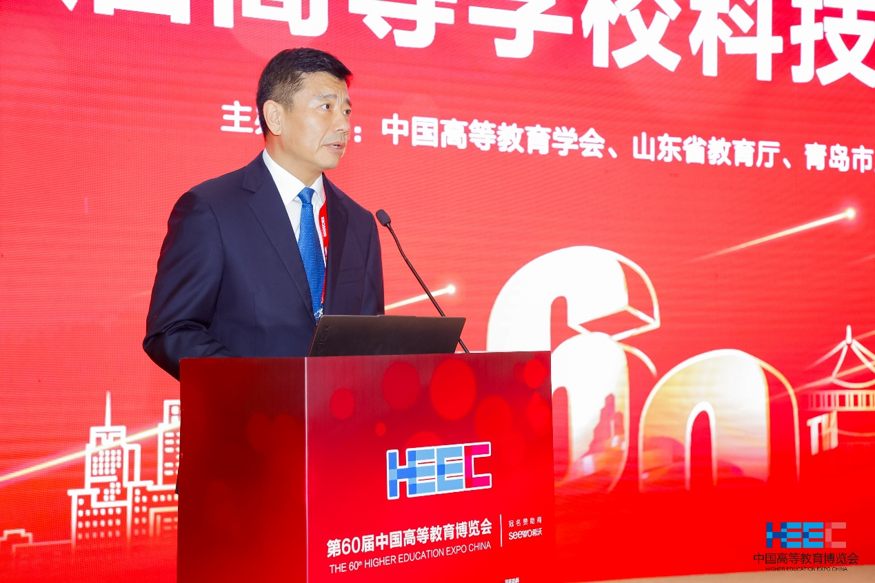 10月12日,作为第60届中国高等教育博览会的主论坛之一,由中国高等教育学会、山东省教育厅、青岛市人民政府主办,beat365官方网站等承办的第二届高等学校科技创新大会主论坛在青岛顺利召开。中国高等教育学会副会长李家俊,教育部科技司副司长杨黄浩,山东省委教育工委常务副书记、省教育厅党组书记、厅长李明,河南省科技厅厅长、党组书记张锐,中国科学院院士、天津大学副校长元英进,中国工程院院士、桥隧领域施工技术与工程管理专家、中国交通建设股份有限公司总工程师林鸣,青岛市政府副秘书长陶兴成,乌克兰国家工程院外籍院士夏庆华,第二批全国高校黄大年式教师团队、北京协和医院内科学系副主任吴东,青岛市教育局副局长项骏,中国疏浚协会理事长周静波以及来自高校的领导和企业代表出席论坛。论坛由beat365官方网站党委书记李兴伟主持。