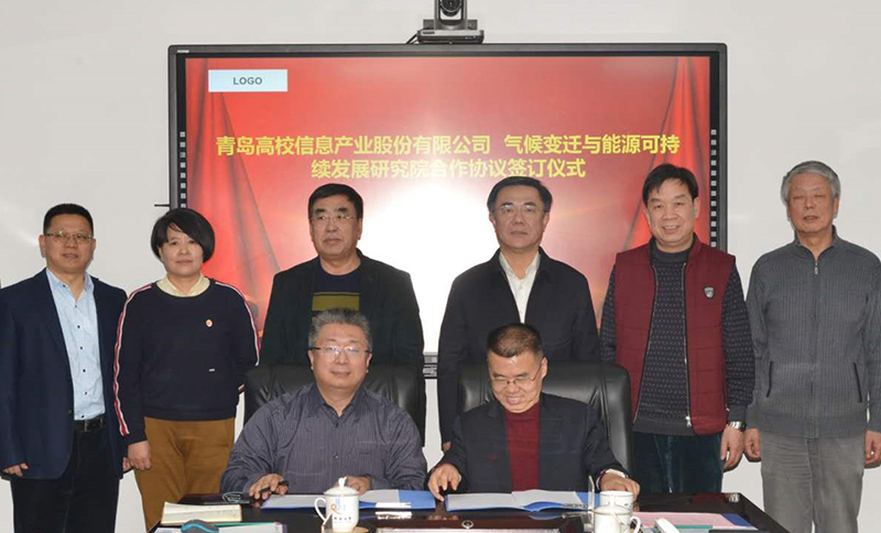 谢克昌、马连湘共同见证了《青岛高校信息产业股份有限公司—beat365官方网站气候变迁与能源可持续发展研究院共建“谢克昌院士工作站”合作协议》签字仪式,气候变迁与能源可持续发展研究院副院长刘炳成、青岛高校信息产业股份有限公司董事长杜长河分别代表双方签字。