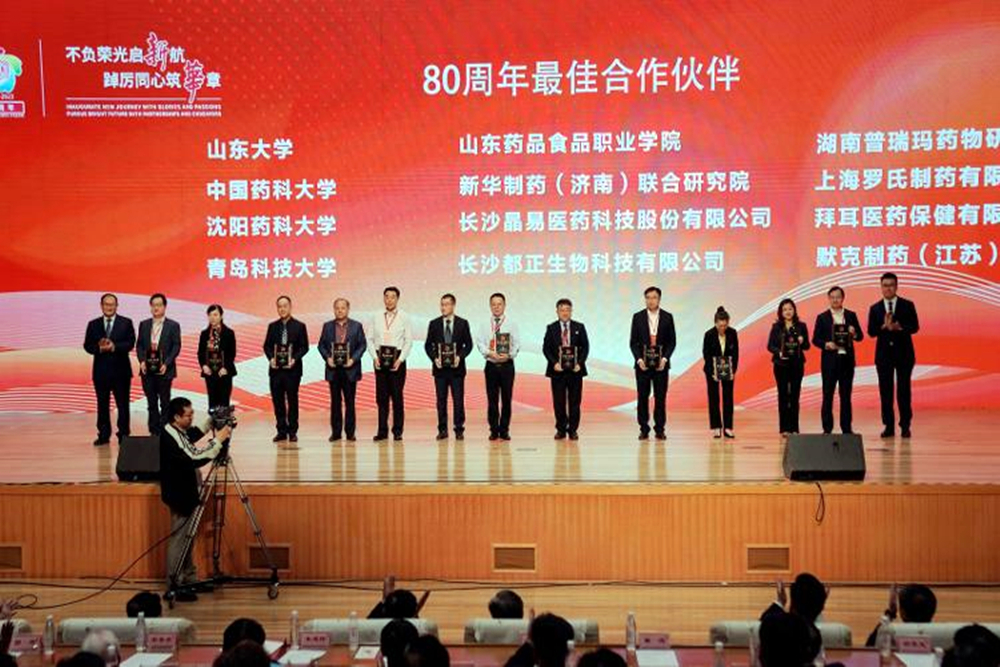 会上还颁发了80周年最佳合作伙伴奖,beat365官网与山东大学、罗氏制药、拜耳医药等单位获奖,化工学院朱兆友老师代表学校领奖。
