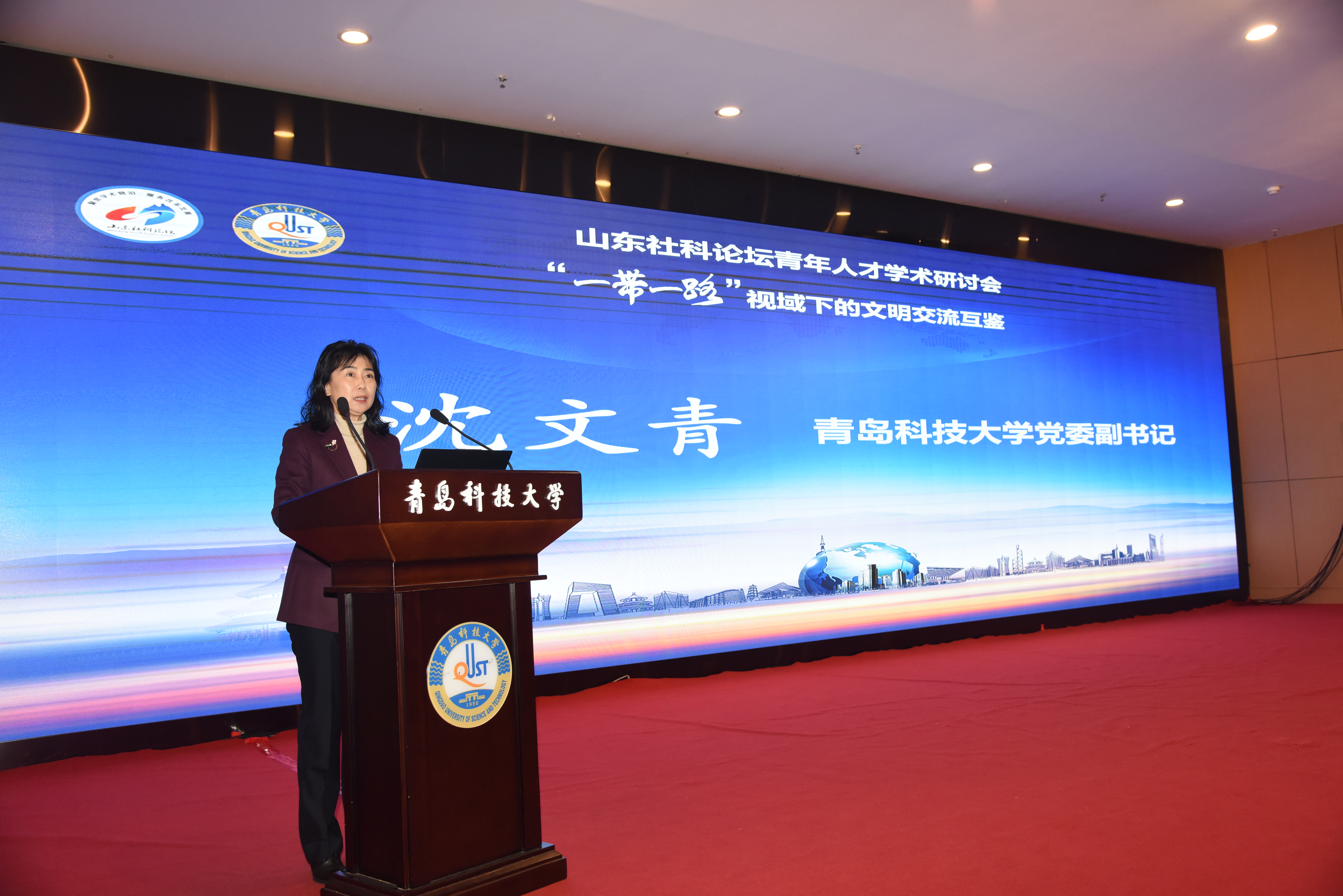 11月24日,山东社科论坛青年人才学术研讨会——“一带一路”视域下的文明交流互鉴在beat365官方网站召开。山东省社科联党组成员、副主席杨宗杰,青岛市社科联党组书记、副主席郑海涛,《山东社会科学》杂志社社长、主编刘要停,学校党委书记李兴伟、党委副书记沈文青等出席开幕式。