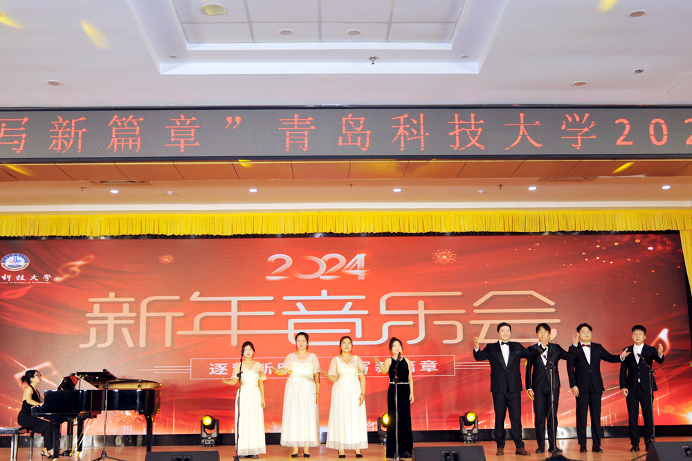 新年音乐会作为展现学校文化建设、推进文化育人建设的重要窗口,展现了学校音乐专业办学和育人成果,深受师生欢迎。音乐会在学校官方视频号、抖音,大众网进行同步直播,师生及校友近25万人次通过网络分享了母校的发展成就,也通过网络表达了对祖国和母校的新年祝福。回眸2023年,青科大人时刻弘扬“科大精神”、践行“橡胶品格”,在谱写“特色鲜明、走在前列”高水平大学之路上拼搏奋斗,加快推动内涵式高质量发展,将青春奋斗与中华民族伟大复兴同频共振、同声共唱。展望2024年,青科大人将持续深入学习贯彻习近平新时代中国特色社会主义思想,传承中华优秀传统文化,用丰硕的成果和自信的风采,以青春为笔、以奋斗为墨,书写教育强国、教育强省的崭新篇章。