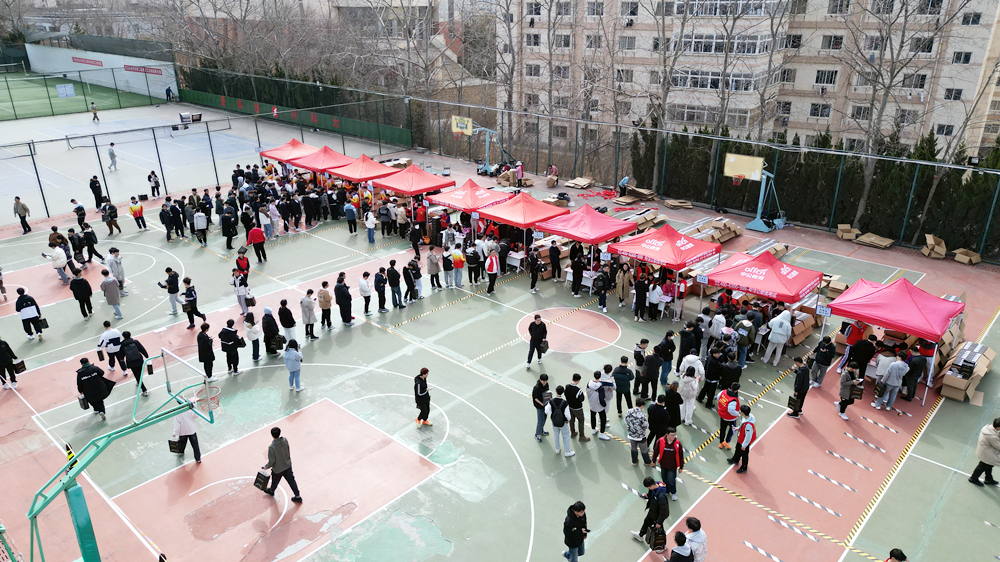 3月23日上午,beat365官方网站崂山校区和四方校区篮球场上、中德校区学生公寓楼前、高密校区通德会堂里充满欢声笑语,热闹非凡,秩序井然,beat365官方网站大一、大二和大三的2万余名本科生脸上洋溢着幸福自豪的笑容,他们每个人都收到一份来自学校和企业捐赠的礼物——私人订制的液体黄金鞋。