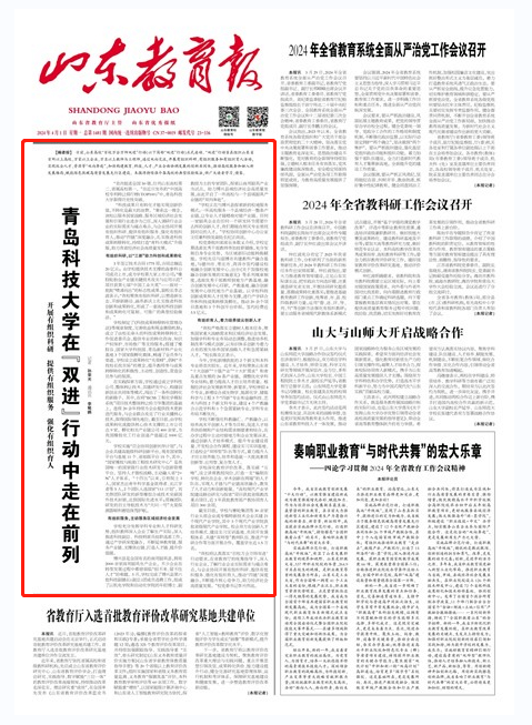 4月1日,《山东教育报》头版头条以《beat365官方网站在“双进”行动中走在前列——开展有组织科研 提供有组织服务 强化有组织育人》为题,报道学校通过与企业协同开展有组织科研、提供有组织服务、强化有组织育人,推动“四链”深度融合,扎实推进科技成果转移转化,持续打造“青科大模式”升级版,助力山东省经济社会高质量发展。全文如下: