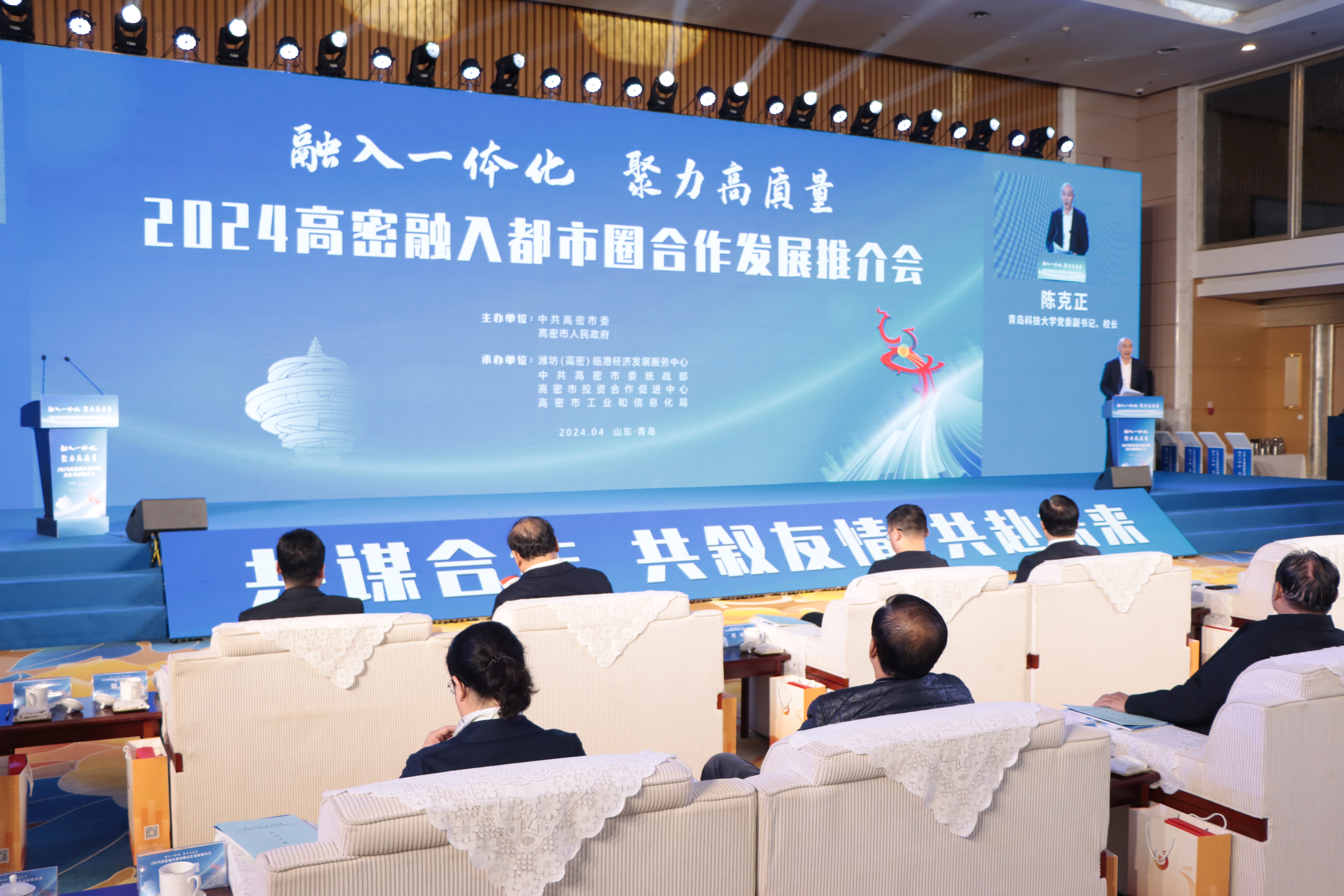 4月3日上午,“融入一体化·聚力高质量”2024高密融入都市圈合作发展推介会在青岛举行。校长陈克正受邀出席大会并致辞。