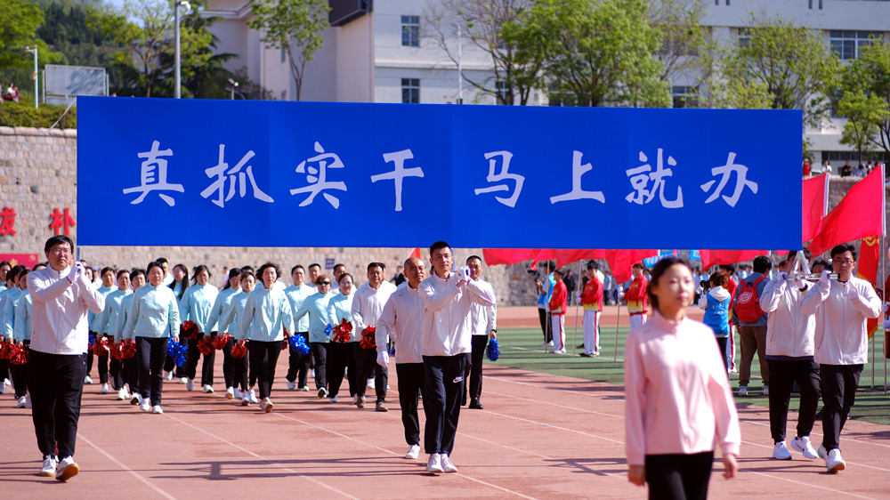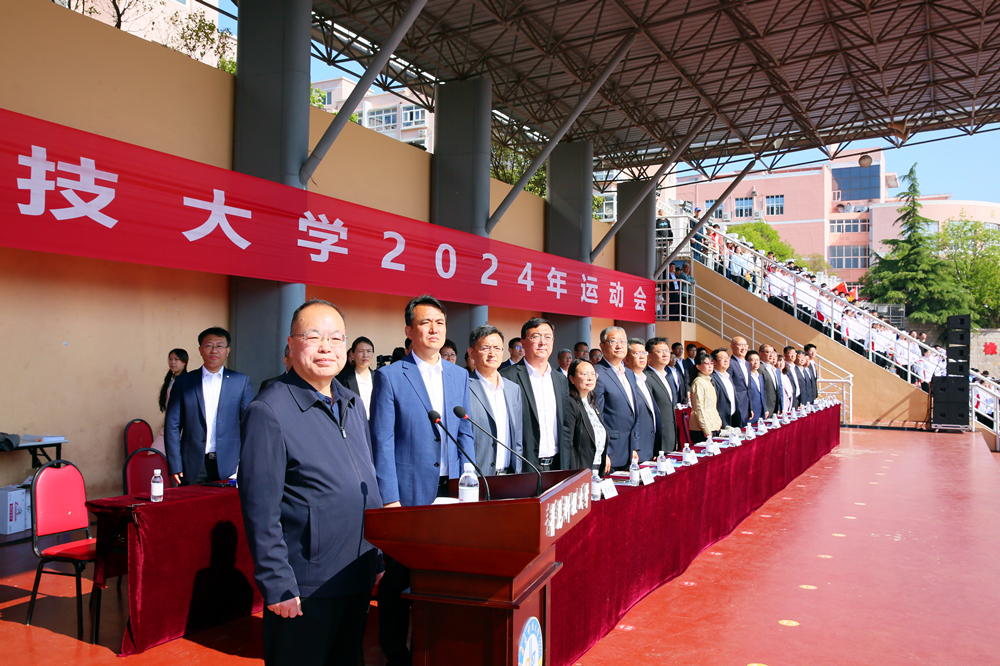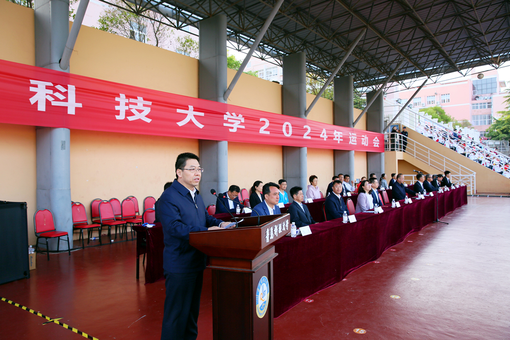 陈克正宣布beat365官方网站2024年运动会开幕。他指出,学校高度重视体育工作,坚持将“提高学生身体素质、提高学生综合素质、服务学生全面发展”作为目标导向,闯出了一条“课堂+实践+联赛”三平台五结合一体化的体育综合改革路径,体育综合育人成效显著。广大师生的锻炼意识持续增强,身体素质不断提升,“拥抱体育、出彩人生”的理念更加深入人心。近年来,健康跑参与度不断提高,尤其是在液体黄金跑鞋的助力下,同学们的运动热情持续升温,跑步打卡已然成为新风尚。希望全体运动员在2024奥运之年,发扬“更快、更高、更强、更团结”的奥林匹克精神,勇于拼搏、赛出风格、赛出水平;希望全体裁判员、教练员和工作人员恪尽职守,以高度的责任心、热情的服务和无私的奉献,优质高效地完成赛会的各项工作;希望广大师生发扬体育精神,相互学习、加强交流、增进友谊,把运动会办成“爱体育·兴科大”的盛会,热爱体育、拥抱体育,为出彩人生打下坚实的基础,为加快推进“特色鲜明、走在前列”的高水平大学建设,持续贡献智慧和力量。
