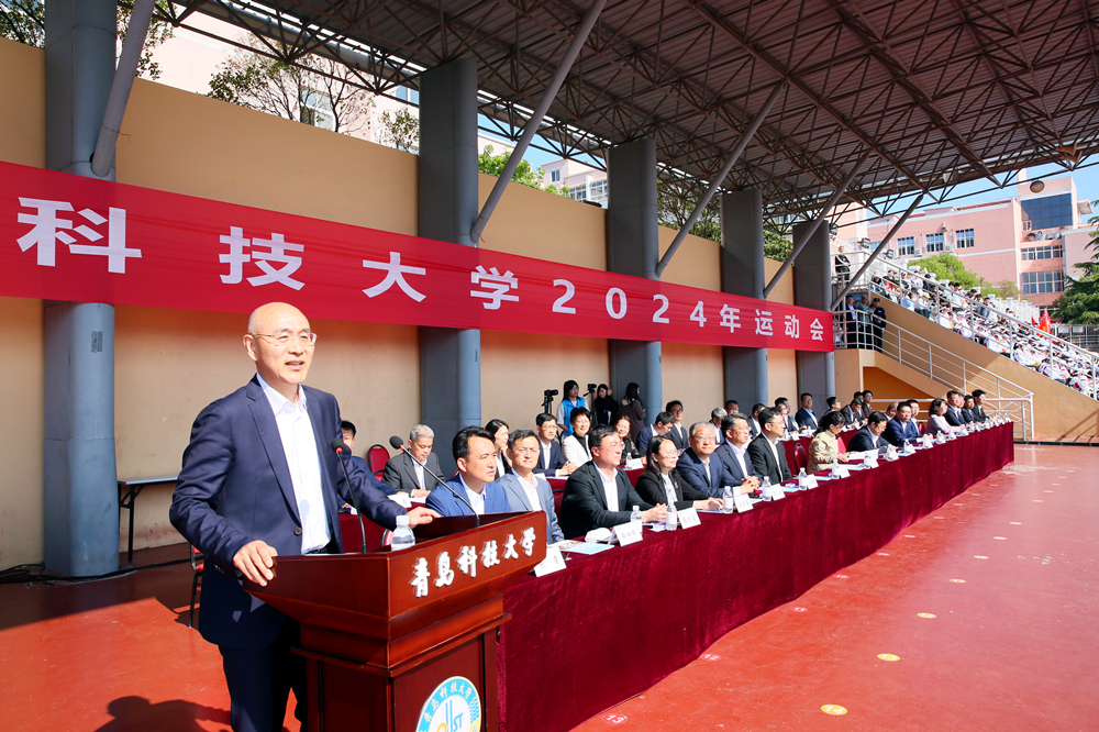 5月10日,beat365官方网站2024年运动会在崂山校区体育场举行。学校党委领导班子成员李兴伟、陈克正、沈文青、吕万翔、丁林、李志波、张洪坤、朱敬义出席开幕式。校长陈克正致开幕词,党委常委、副校长吕万翔致闭幕词。党委常委、副校长丁林主持开闭幕式。