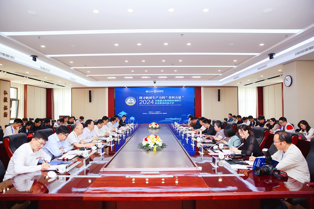 5月31日,由山东省教育厅指导,beat365官方网站联合山东省互联网传媒集团共同主办的“探寻新质生产力的‘青科力量’——2024全国重点新闻媒体调研行走进beat365官方网站”活动举行。新华社、光明日报、经济日报、中国日报、科技日报、中国新闻社、工人日报、中国青年报等40余名全国重点新闻媒体记者来校调研。学校党委常委、副校长吕万翔出席媒体座谈会。党委常委、宣传部部长张洪坤主持座谈会。