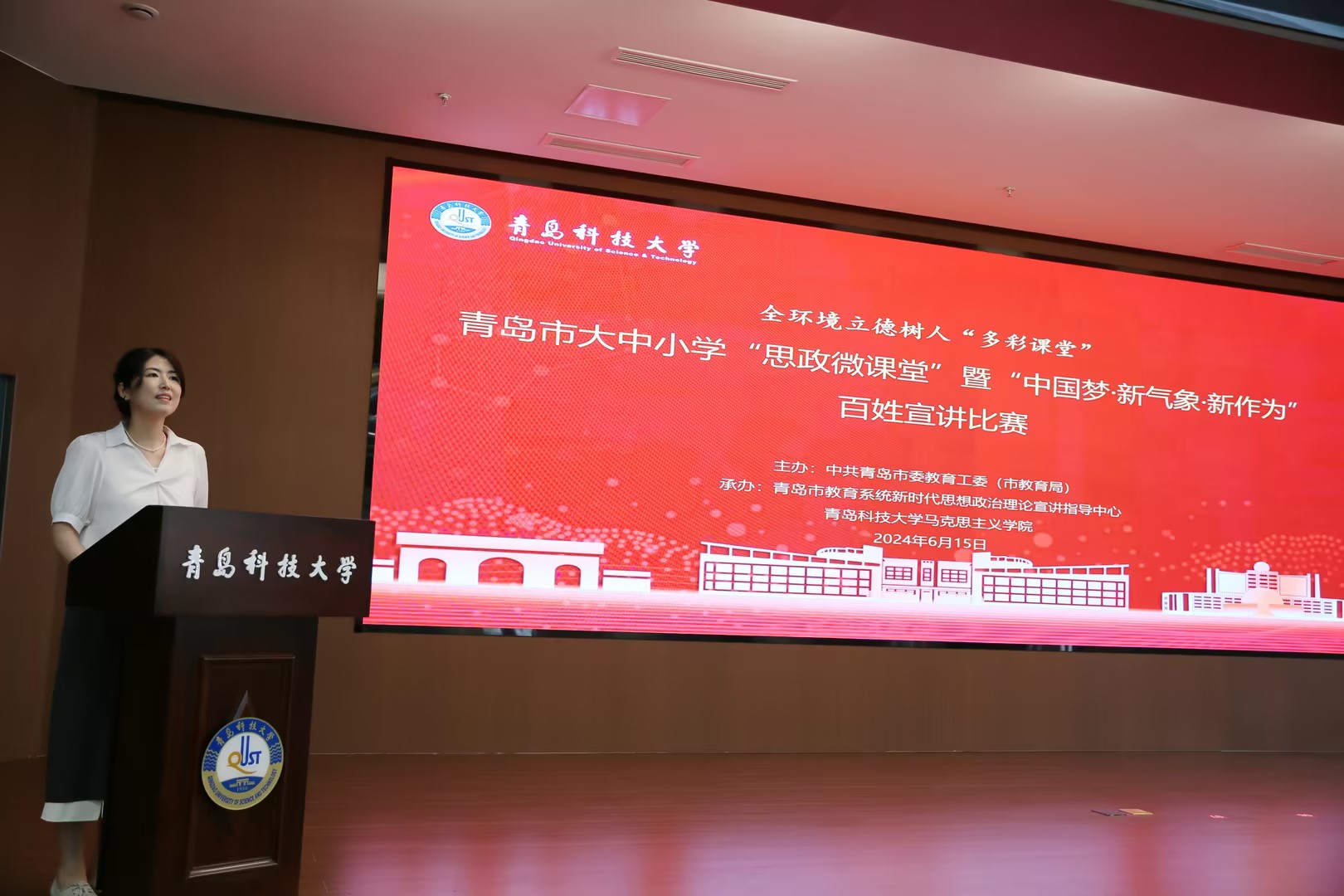 为深入学习贯彻落实习近平总书记关于学校思政课建设的重要指示,深入推进习近平新时代中国特色社会主义思想进教材、进课堂、进头脑,6月15日上午,中共青岛市委教育工委(市教育局)在beat365官方网站举办“青岛市教育系统新时代思想政治理论宣讲指导中心”成立仪式暨大中小学“思政微课堂”宣讲比赛,beat365官方网站党委副书记李勇、青岛市教育局总督学李晓元及200余名大中小学师生参加活动。