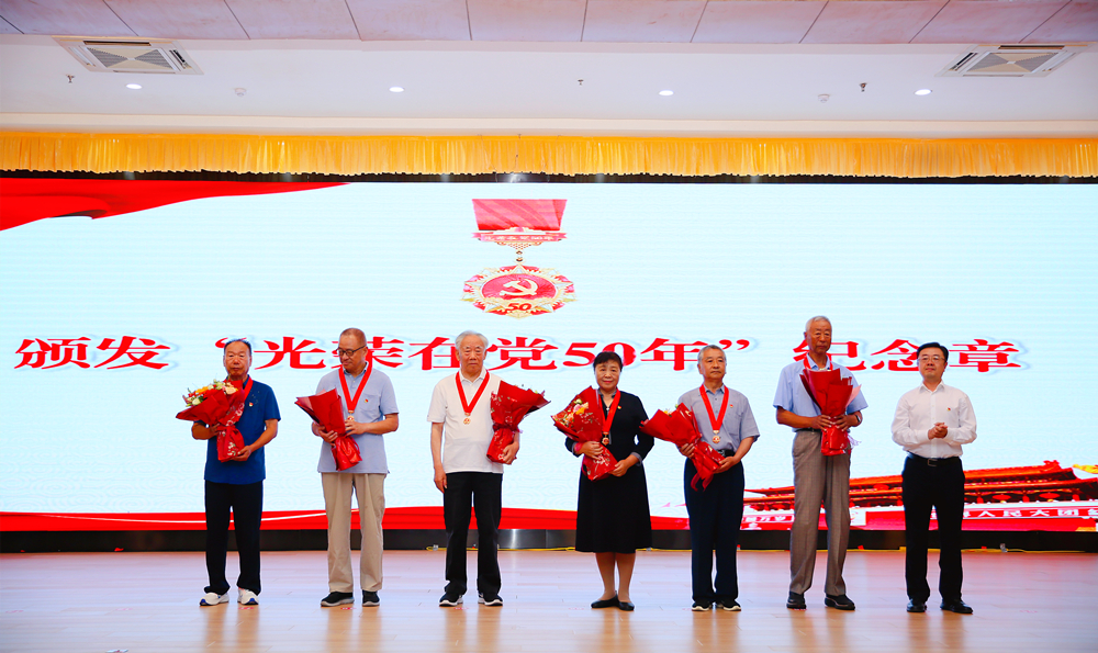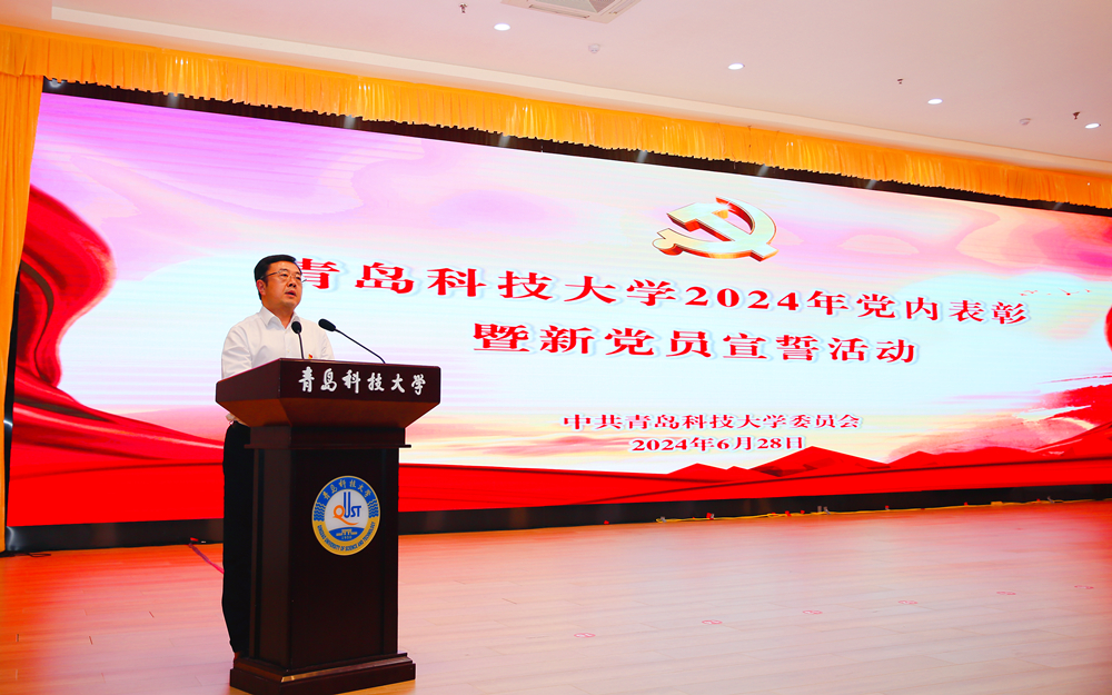 为庆祝中国共产党成立103周年,6月28日下午,学校在崂山校区第二报告厅隆重举行2024年党内表彰暨新党员宣誓活动。学校党委书记李兴伟出席会议并讲话,为2024年学校获得“光荣在党50年”纪念章的同志颁发了纪念章。党委副书记李勇,原党委副书记、纪委书记徐以光,党委常委、宣传部部长张洪坤,党委常委、统战部部长秦姣出席会议。会议由党委常委、副校长吕万翔主持。