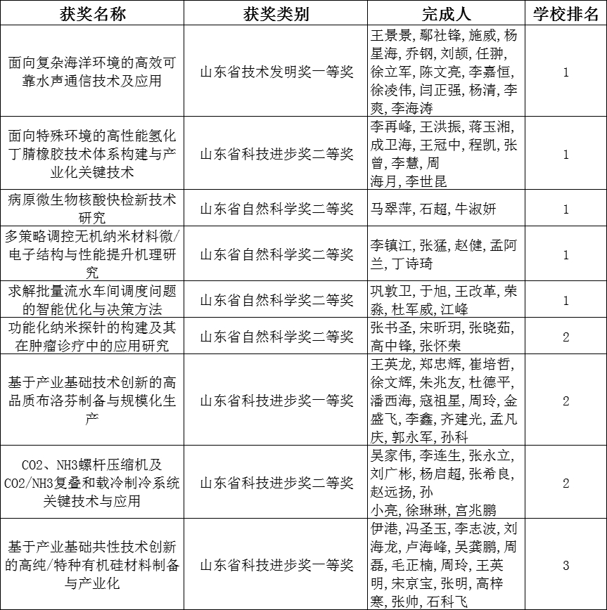 beat365官方网站共有9项成果获得2023年度山东省科学技术奖。9项成果中beat365官方网站作为第一完成单位的项目共5项,获批数量较2022年度增长4项,获奖数量和质量取得新突破,其中王景景教授团队的“面向复杂海洋环境的高效可靠水声通信技术及应用”项目荣获山东省技术发明奖一等奖。