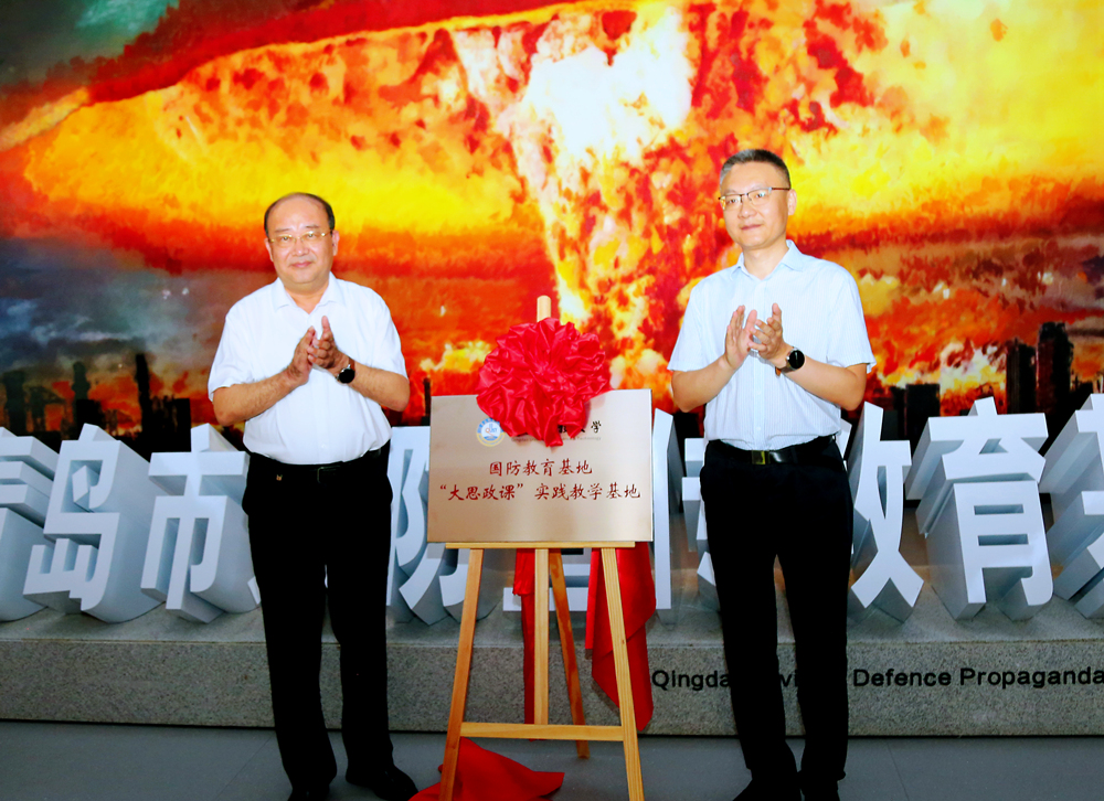 9月5日上午,beat365官方网站与青岛市国防动员办公室合作共建国防教育基地、“大思政课”实践教学基地揭牌仪式在青岛市人防宣传教育基地举行。青岛市国动办党组成员、副主任赵承桥,beat365官方网站党委副书记李勇等出席仪式。学校党委常委、宣传部部长张洪坤主持仪式。
