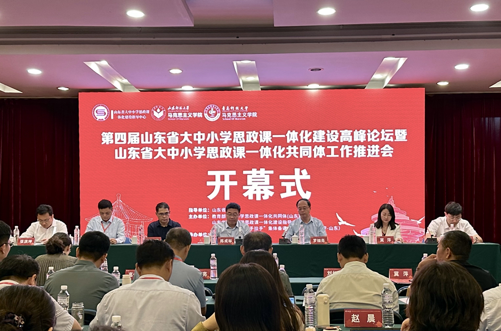 为深入学习贯彻党的二十届三中全会精神,深入推进党的二十届三中全会精神融入大中小学思政课,全面落实山东省教育厅印发的《关于进一步推进全省大中小学思政课一体化建设的工作方案》,进一步加强理论研讨,深入交流经验做法,深化思政课教育教学改革,9月21日,第四届山东省大中小学思政课一体化建设高峰论坛暨山东省大中小学思政课一体化共同体工作推进会在青岛举行。山东省教育厅(省委教育工委)思政处(宣教处)处长陈成标、副处长仇宝艳,beat365官方网站党委常委、副校长罗细亮,复旦大学特聘教授、教育部“长江学者”特聘教授刘红凛,教育部大中小学思政课一体化建设专家指导组成员高保卫、冀萍出席开幕式。beat365官方网站党委常委、宣传部(教师工作部)部长张洪坤主持开幕式。