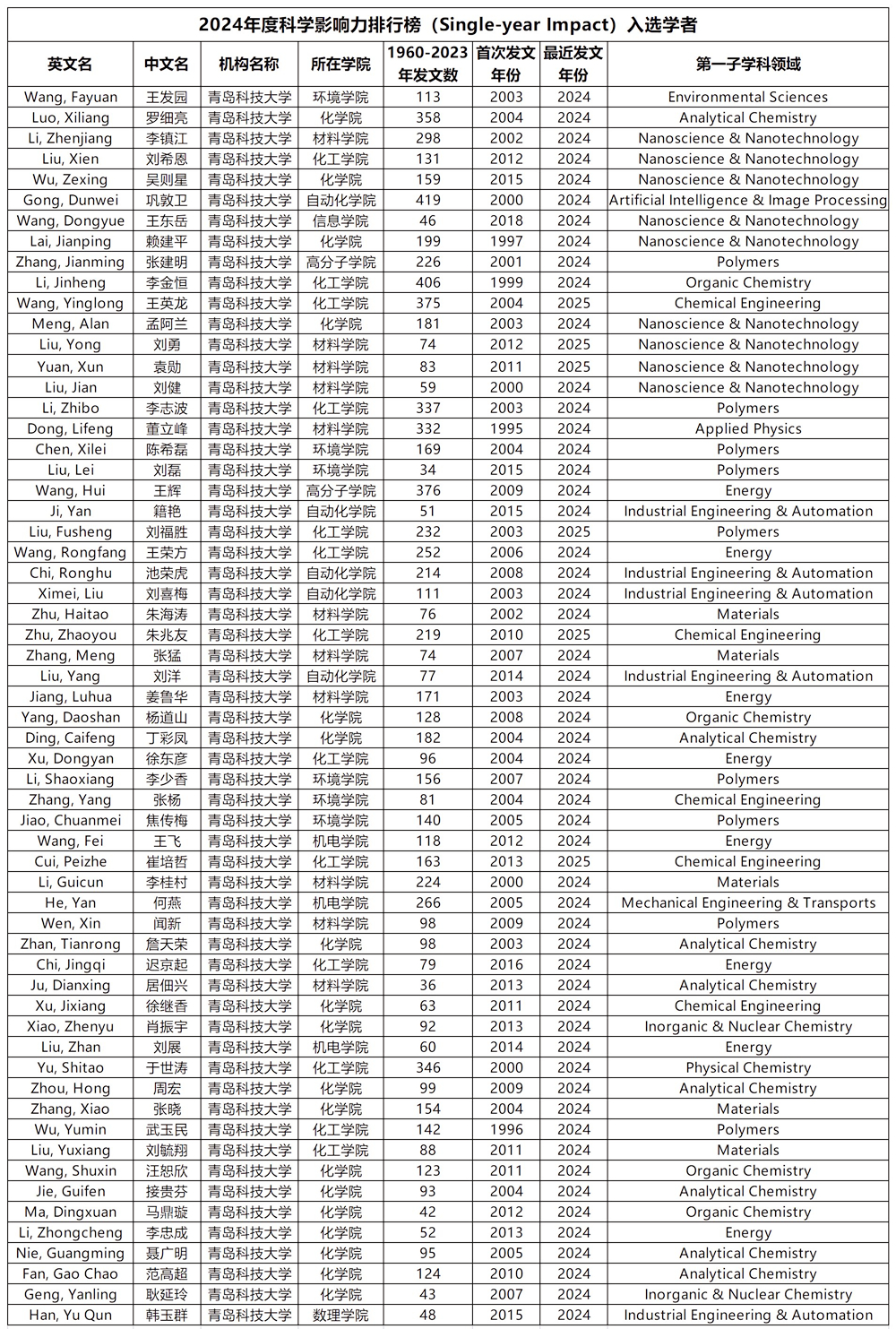 据悉,该榜单基于Scopus数据库的引用数据系统分析,通过多种综合指标(如被引数、H指数、HM因子等)评估科学家的“生涯影响力”和“年度影响力”,从近700万名科学家中遴选出世界排名前2%的科学家,分为22个领域和174个细分子领域。终身科学影响力榜单关注整个学术生涯迄今的影响力年度科学影响力榜单聚焦本年度学术成就。此外,该榜单还提供了面向科学家长期科研表现的衡量指标,客观真实反映科学家的学术影响力。