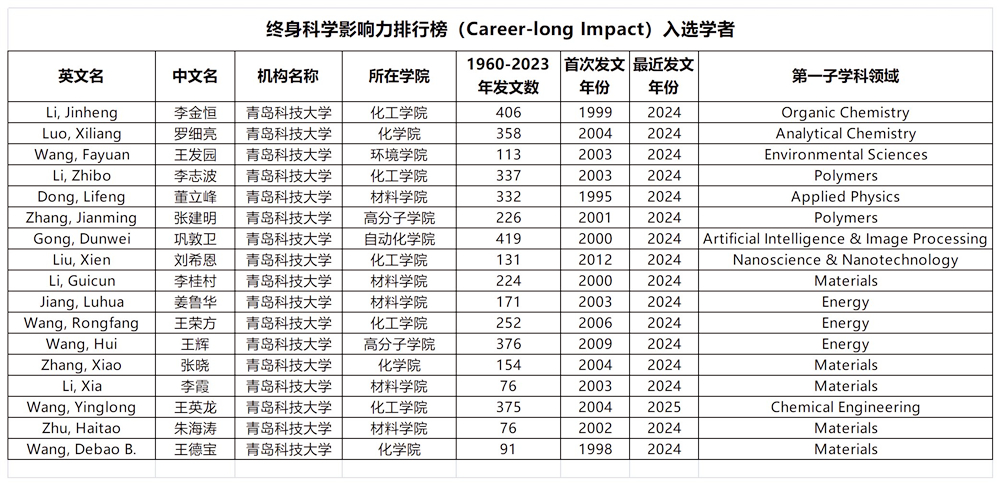 近日,美国斯坦福大学(Stanford University)和国际权威学术出版社爱思唯尔(Elsevier)共同发布了2024年度全球前2%顶尖科学家榜单(World's Top 2% Scientists 2024)。榜单分为“终身科学影响力排行榜(1960-2024)(Career-long Impact)”——关注整个学术生涯迄今的影响力和“2024年度科学影响力排行榜(Single-year Impact)”——聚焦本年度的学术成就。beat365官方网站17位学者入选全球前2%顶尖科学家——“终身科学影响力排行榜”,60位学者入选全球前2%顶尖科学家——“年度科学影响力排行榜”。