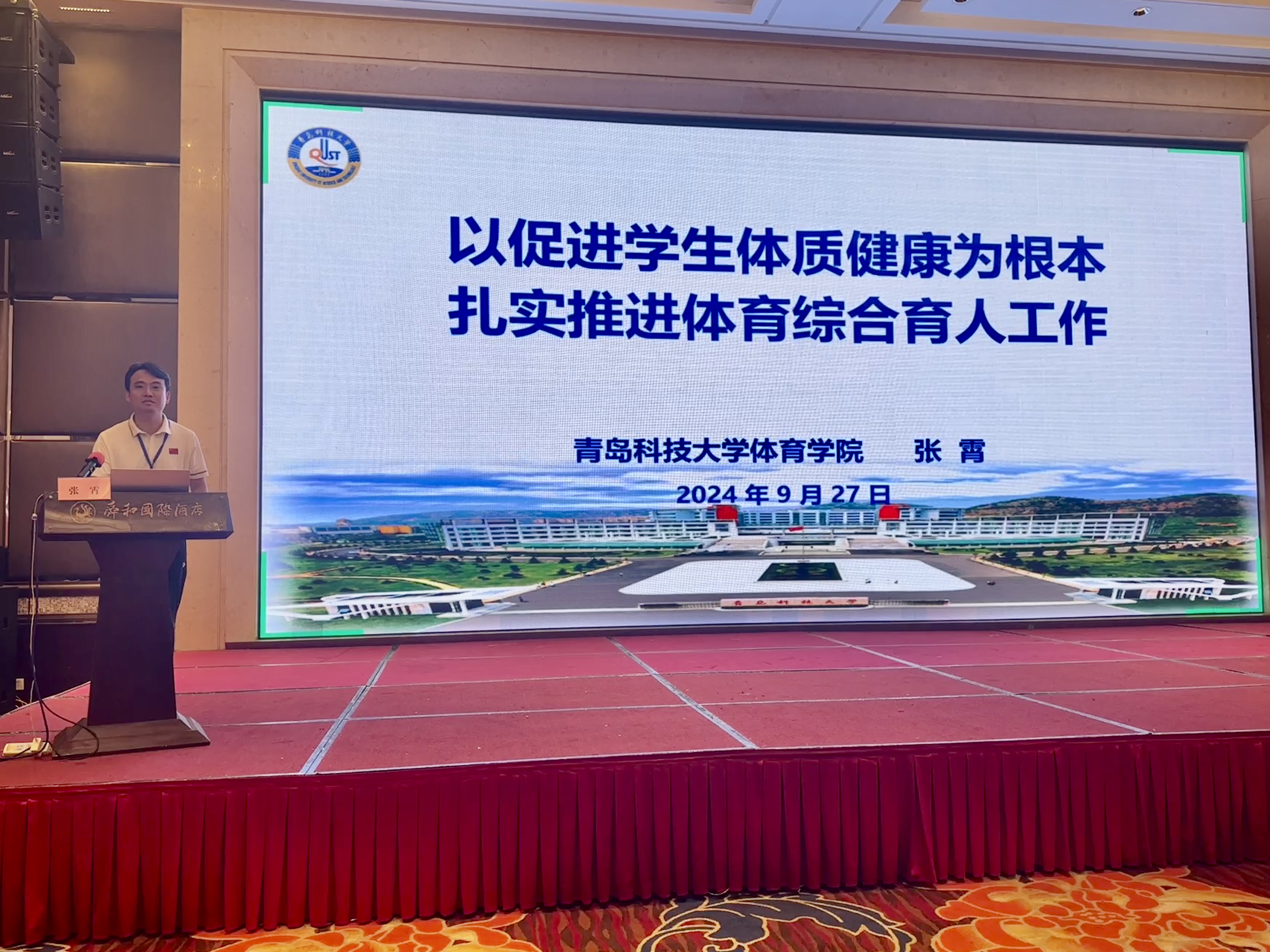 9月27日上午,山东省高等学校学生体质健康提升创新实践交流会在济南召开,山东省教育厅体卫艺处负责同志,省学生体质健康促进中心负责同志,全省各高校体育部门负责人等参加会议。体育学院院长张霄代表学校在经验交流阶段作典型发言。