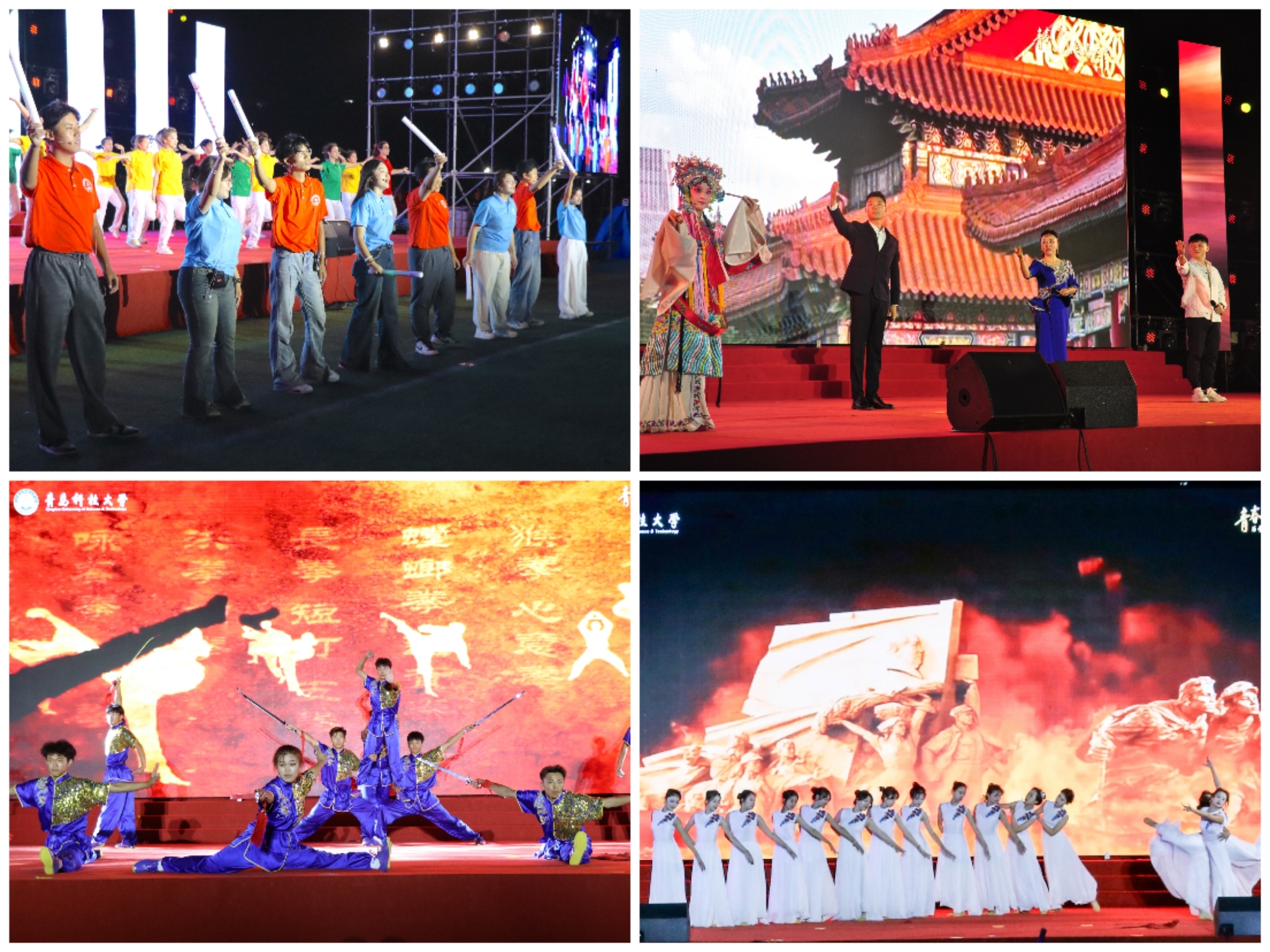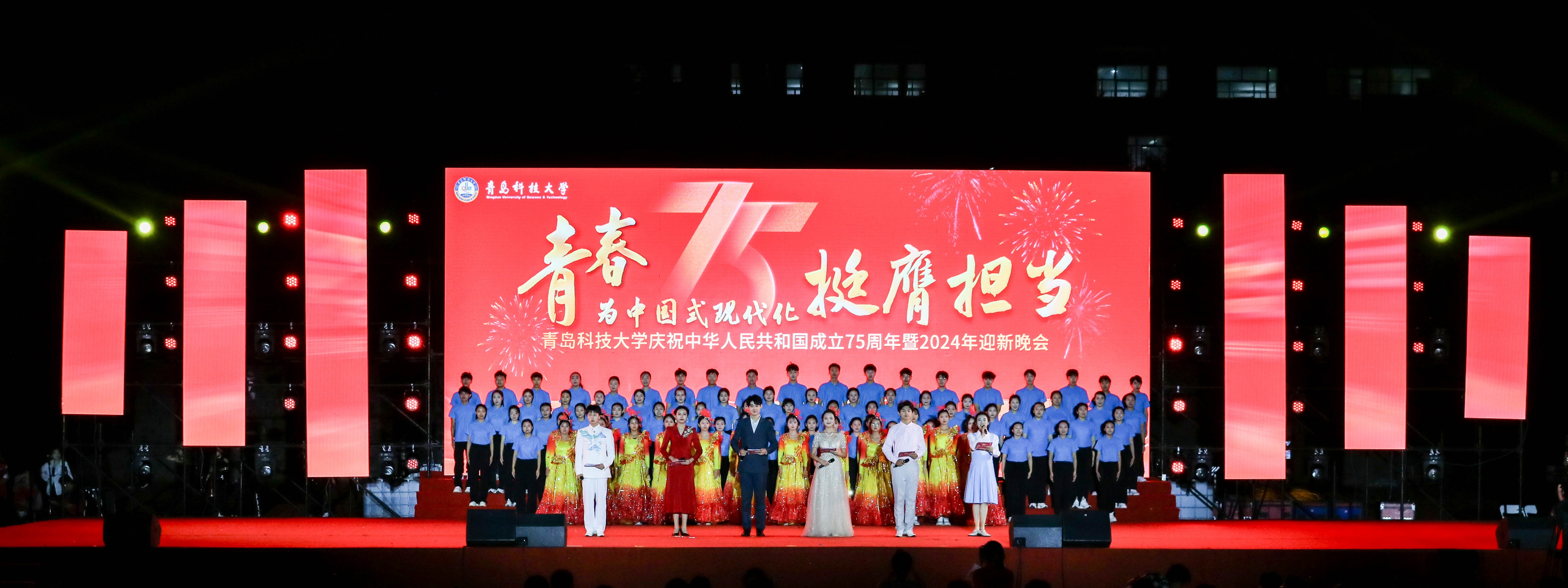 本场晚会以“青春为中国式现代化挺膺担当”为主题,由《有理想逐梦追光》《敢担当挺膺争先》《能吃苦砥砺奋进》《肯奋斗扬帆起航》四个篇章组成。晚会穿插“爱国”“科创”“奉献”3组青春接力故事,融合红色歌剧、歌舞表演、国风展示等多种艺术形式庆祝伟大祖国75周年华诞,号召全校青年学生立报国强国大志向,做挺膺担当奋斗者。