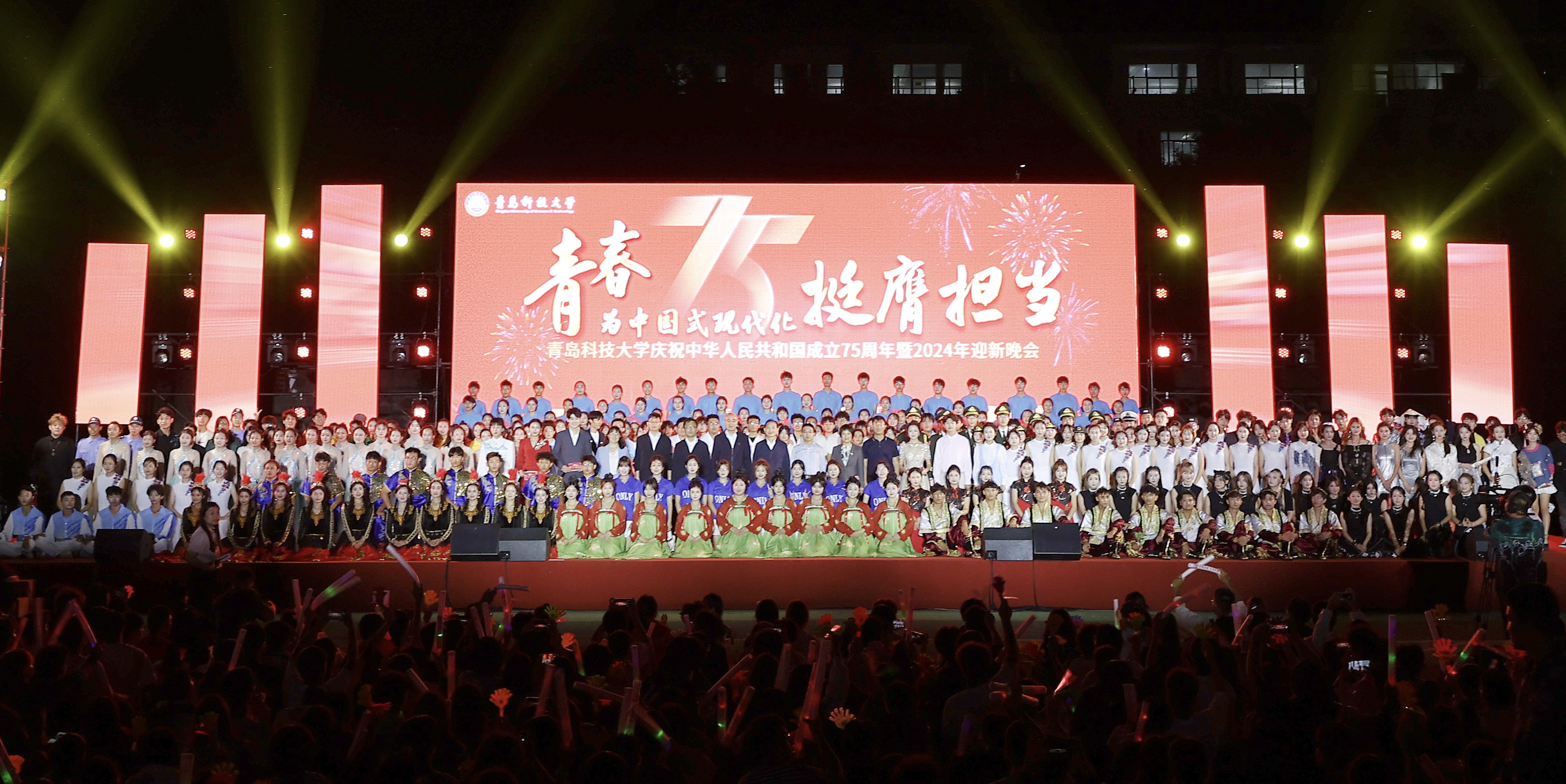 9月28至29日,“青春为中国式现代化挺膺担当”beat365官方网站庆祝中华人民共和国成立75周年暨2024年迎新晚会在四方校区运动场、崂山校区运动场隆重举行。中国高等教育学会副会长、教育部高等教育司原司长张大良受邀出席晚会,学校党委领导班子成员陈克正、吕万翔、丁林、张洪坤、秦姣参加活动。