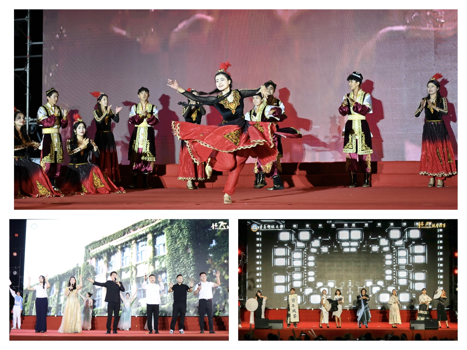 在第三篇章《能吃苦砥砺奋进》中,维吾尔族舞蹈表演《青科花开·石榴红》,在青科大校园绽放出绚丽的民族团结之花。校友代表、师生代表和2024级新生辅导员带来的原创歌舞《青科那些年》,是学校始终坚持扎根祖国大地办大学,培育一代代科大人薪火相传的彰显。艺术学院、机电工程学院和大学生艺术团礼仪团带来的时装秀《奋进青春》洋溢出青春的活力与创造力。