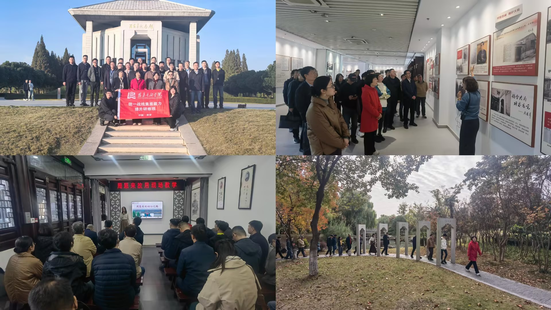 培训采用专题讲座、现场教学、音像教学、情境教学等多种方式开展教学,引领全体学员感悟伟人精神,强化责任担当。在恩来干部学院的安排下,学员们聆听了《以进一步全面深化改革开辟中国式现代化广阔前景——学习党的二十届三中全会精神》《过好“亲属关”——从周恩来致家乡人的书信谈起》等专题讲座,现场学习了“习近平总书记关于周恩来同志‘六个杰出楷模’重要论述”,观看了《大无大有——身边人眼中的周恩来》《榜样周恩来》等视频录像,参观了周恩来故居、周恩来纪念馆、张纯如纪念馆、淮安大运河历史文化园等现场教学点。
