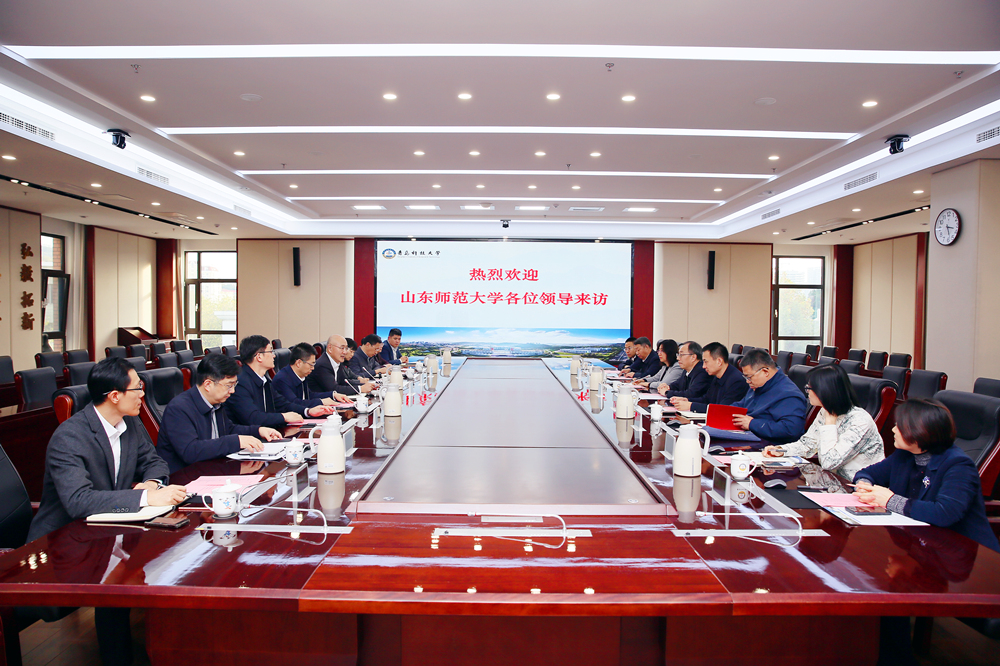 11月19日,山东师范大学党委书记冯继康,党委副书记许双庆,党委常委、副校长周珊珊一行来校考察交流。校长陈克正,党委副书记沈文青出席座谈会,党委常委、副校长吕万翔主持会议。