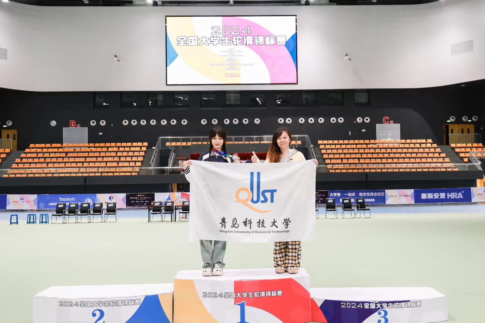在2024全国大学生轮滑锦标赛中,青科大轮滑队员荣获自由式单人花式绕桩女子组季军,实现了学校在轮滑项目的重大突破。