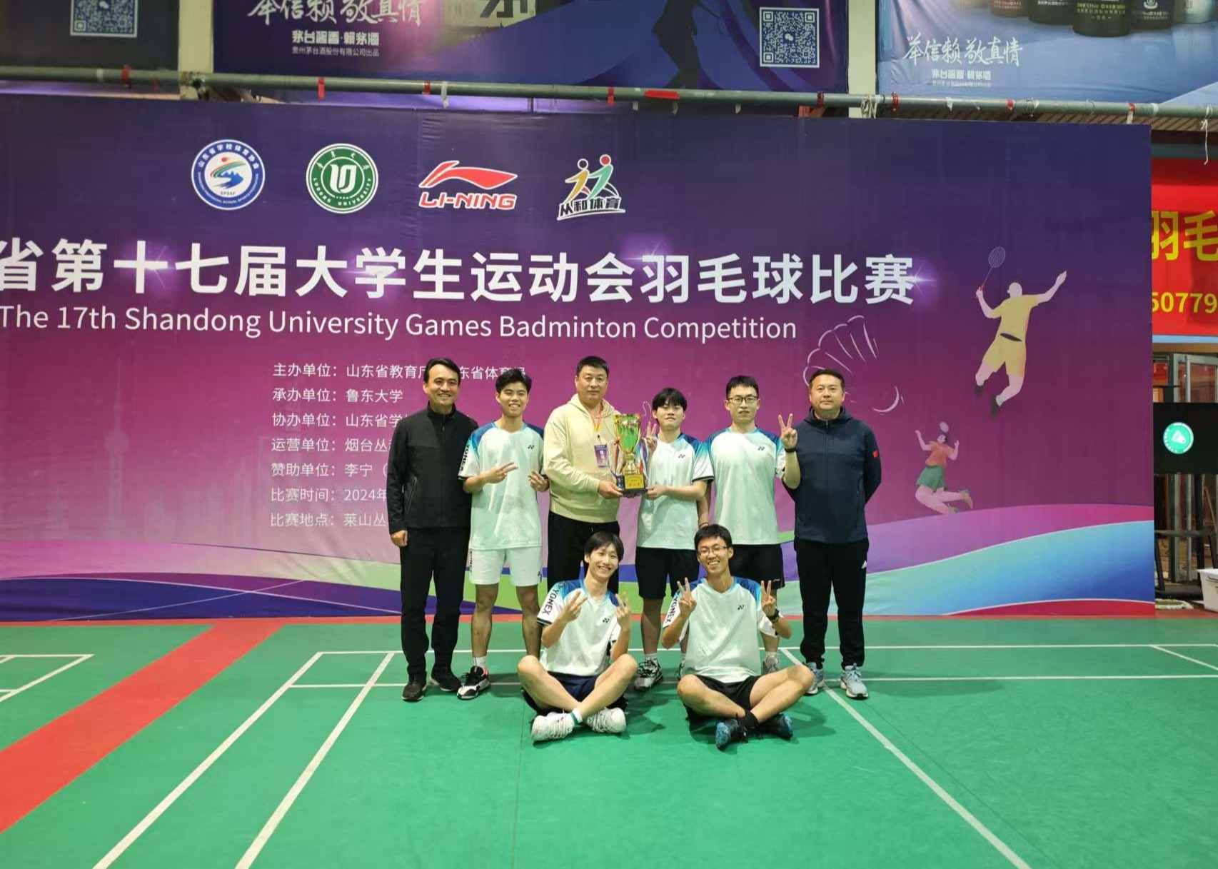 在羽毛球项目比赛中,在主教练杨延东带领下,羽毛球队成员全力以赴、奋勇拼搏,最终获得甲组男子团体第二名的好成绩,实现历史性突破。