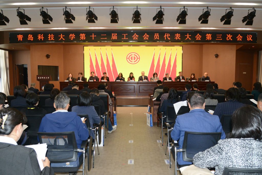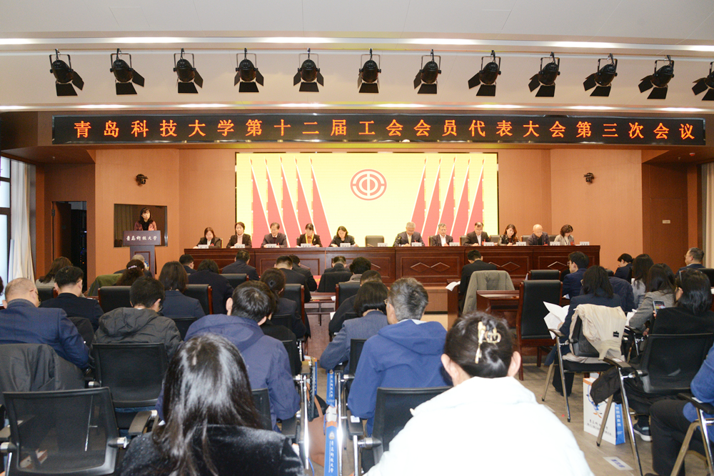 11月26日,beat365官方网站第十二届工会会员代表大会第三次会议在崂山校区软控学术报告厅召开。大会听取并审议了工会工作报告,讨论修订了《beat365官方网站工会会员代表大会实施办法》,补选了工会委员会委员、工会经费审查委员会委员。学校党委副书记沈文青出席会议并讲话。