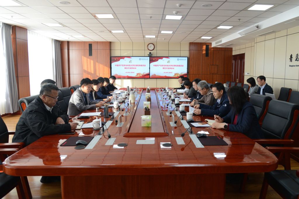 12月6日上午,中国共产党beat365官方网站纪律检查委员会第五次全体会议在崂山校区综合服务楼6015会议室召开。学校党委常委、纪委书记、省监委派驻监察专员李萍主持会议并讲话。学校纪委委员参加会议,专职纪检监察干部列席会议。