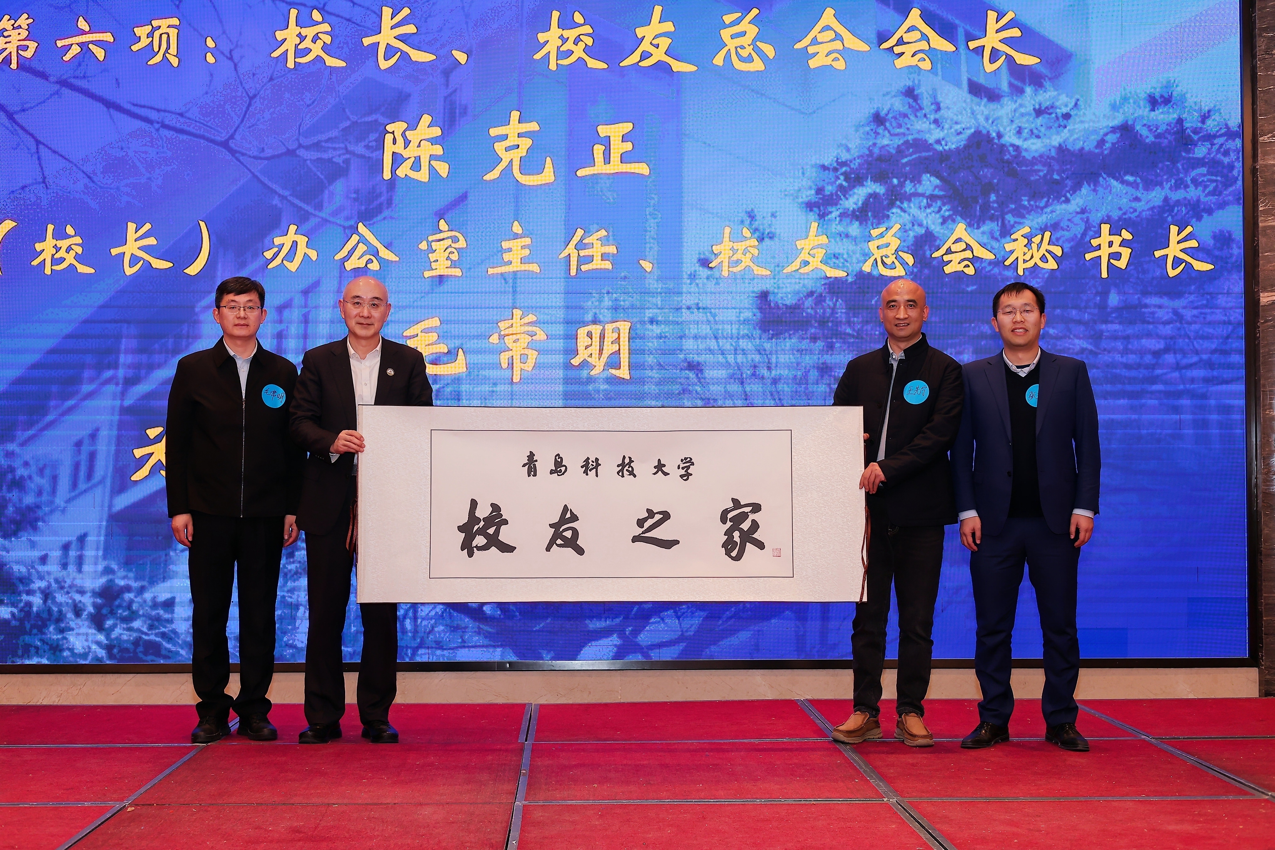 陈克正,校友总会秘书长毛常明,1998级橡胶专业、中策橡胶集团副总经理王先宁以及浙江校友会副会长张文波共同为“校友之家”揭牌,校友之家设置在校友会副会长单位北京天驰君泰(杭州)律所,这标志着浙江校友会拥有了一个全新的校友活动阵地,将更好地凝聚校友力量,促进母校与校友共同发展。