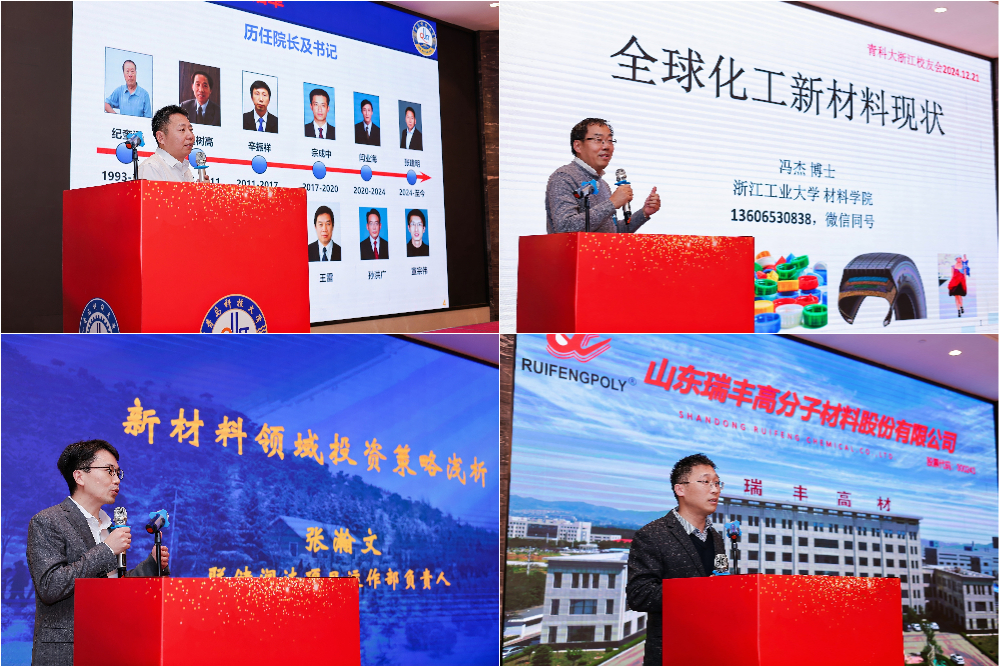 在橡胶新材料产业发展论坛上,高分子学院院长张建明、浙江工业大学教授冯杰、联储润达项目运作部负责人张瀚文、山东瑞丰高分子材料股份有限公司研发部负责人张振国等分别作了专题报告。