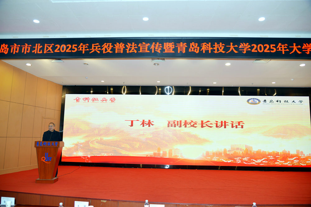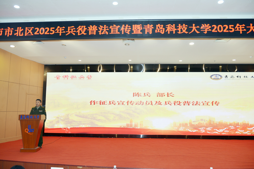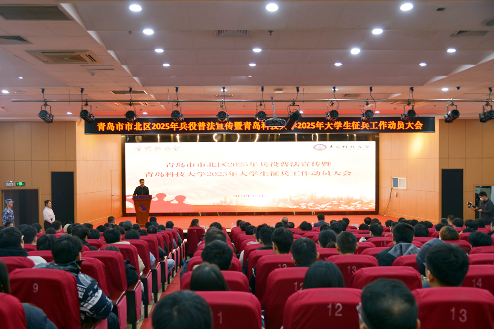 12月25日,青岛市市北区2025年兵役普法宣传暨beat365官方网站2025年大学生征兵工作动员大会在崂山校区举行。青岛市市北区委常委、市北区征兵办主任、市北区人民武装部部长陈兵,学校党委常委、副校长丁林,党委常委、宣传部长张洪坤和学校相关部门负责人出席活动。
