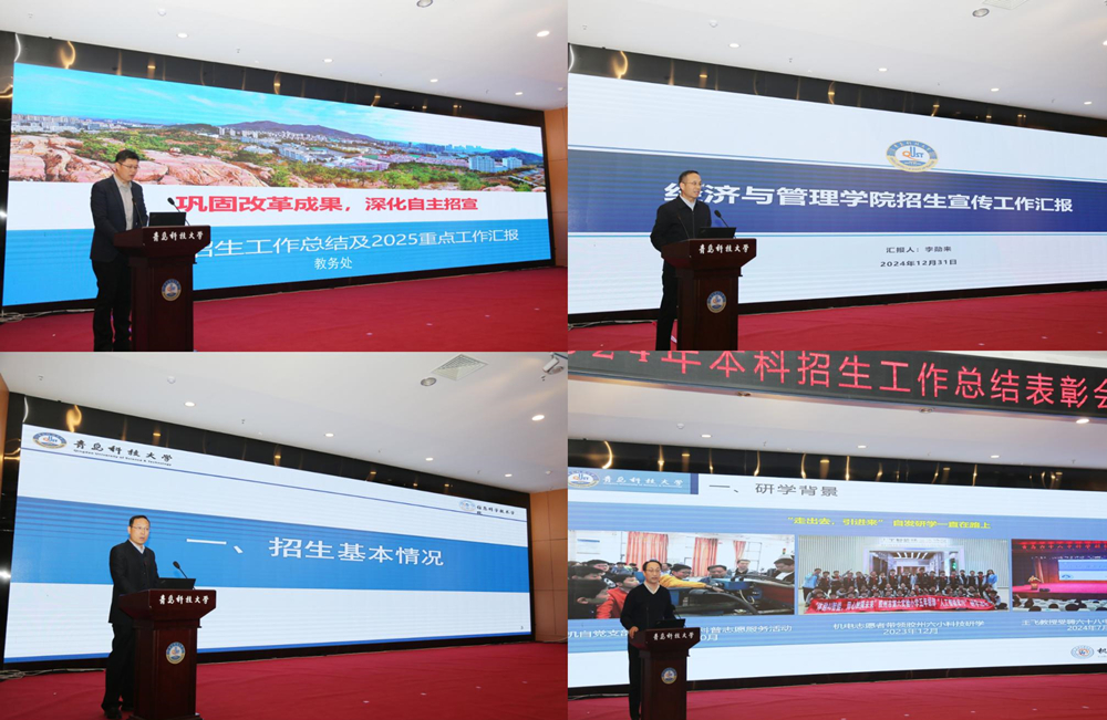 会上,郑健作题为《惟真惟实 追求卓越——中国石油大学(华东)本科生源质量提升的探索与实践》辅导报告。教务处处长马翠萍宣读了《beat365官方网站关于表彰2024年度招生工作优秀单位的决定》表彰文件,法学院、高分子科学与工程学院、信息科学技术学院获得优秀生源单位称号,机电工程学院、经济与管理学院、艺术学院获得优秀招生宣传单位称号。本科招生办公室主任徐立勋总结了2024年招生工作,汇报了2025年重点工作。经济与管理学院、信息科学技术学院、机电工程学院作为先进单位代表作典型发言。