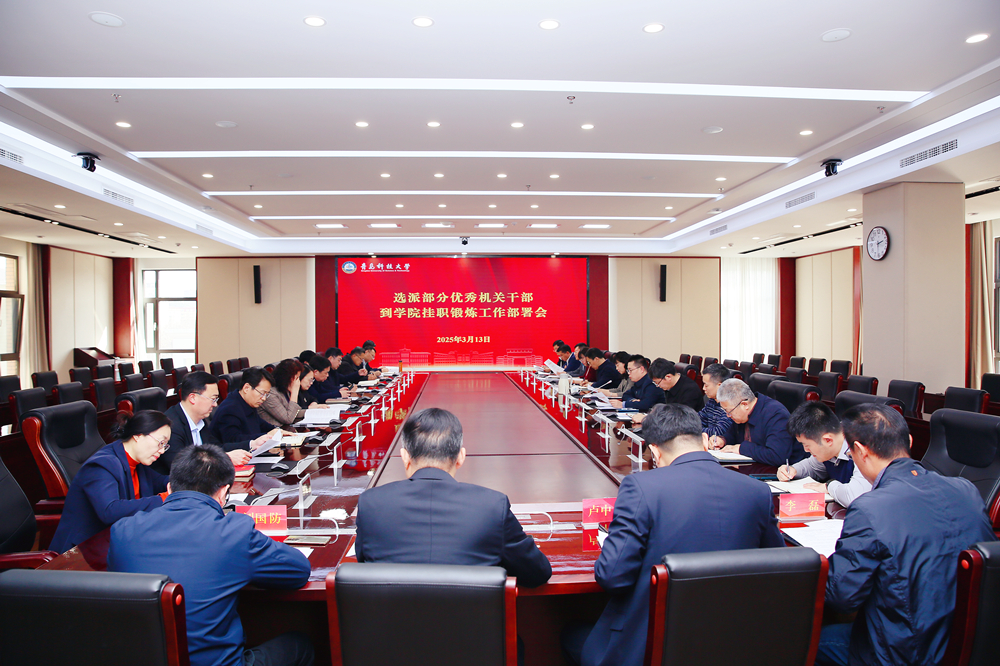 3月13日下午,学校召开会议部署选派部分优秀机关干部到学院挂职锻炼相关工作。党委副书记沈文青出席会议并讲话。党委常委、组织部部长朱敬义主持会议。
