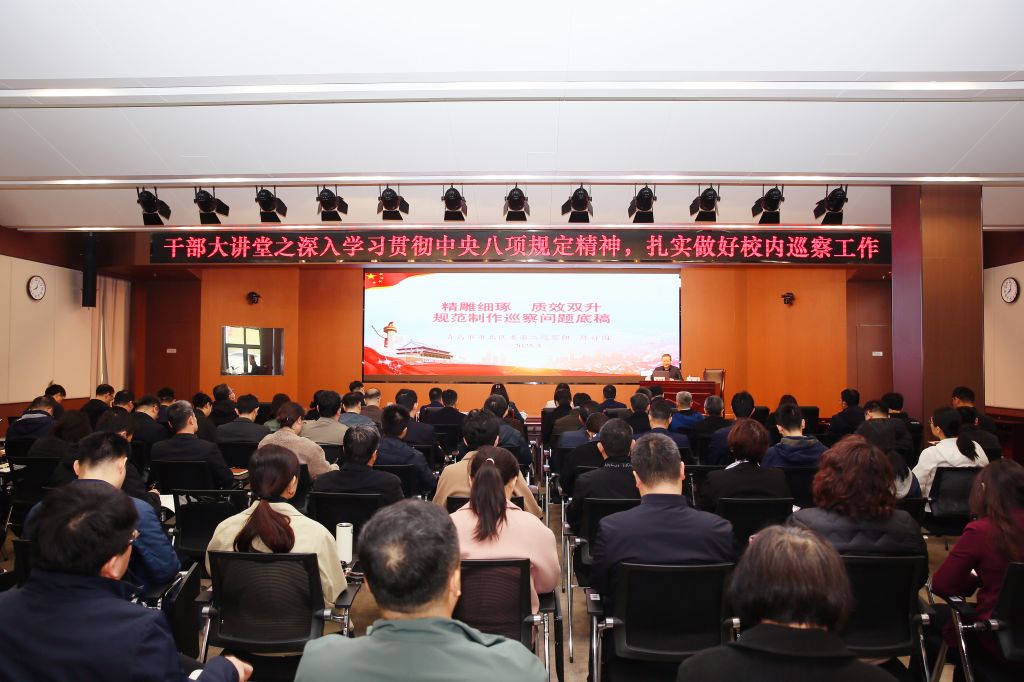 为持续深化全面从严治党,强化干部作风建设,推动校内巡察工作高质量发展,3月28日,学校举办“深入学习贯彻中央八项规定精神扎实推进校内巡察工作”干部大讲堂,市北区委巡察办巡察组组长陈祥国作专题辅导报告。培训会由学校党委常委、纪委书记、省监委驻beat365官方网站监察专员李萍主持。