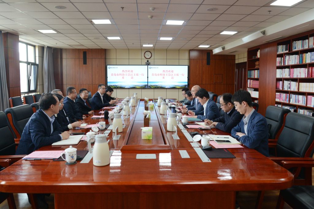 4月23日下午,青岛市科协主席王崇江一行来校调研交流。崂山区委副书记徐奎旺,青岛市科协党组成员、副主席刘红英,崂山区副区长梁宏涛陪同调研。校长陈克正,党委常委、副校长吴明铂出席座谈会。