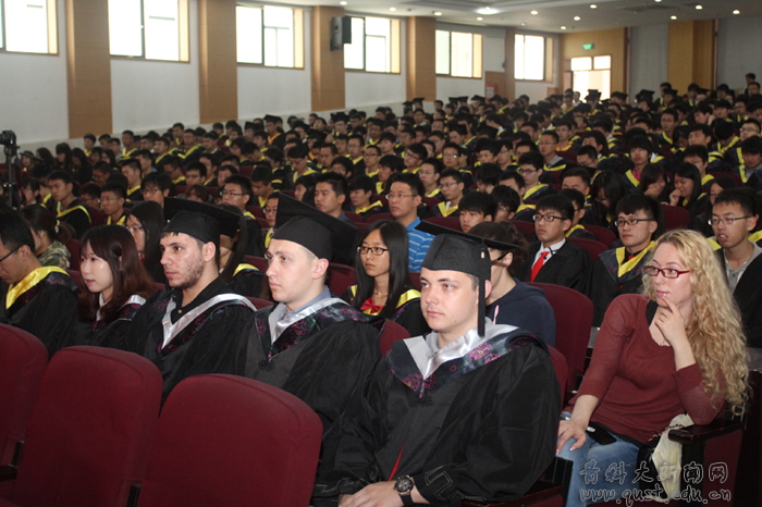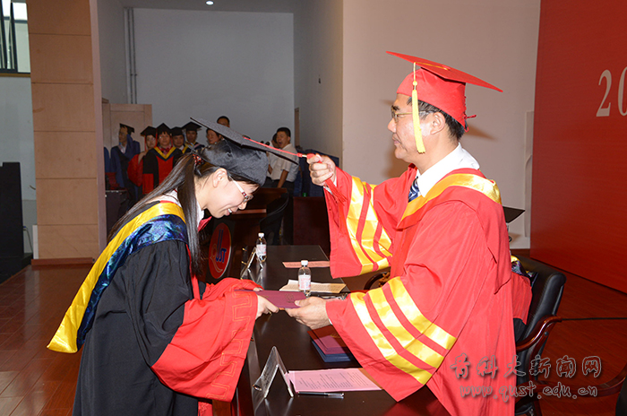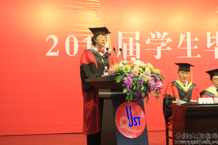 毕业典礼上,毕业生代表作了献辞,深情回顾了在科大生活学习的点点滴滴,表达了对母校、老师、同学的惜别和祝福。辛振祥、唐跃、孙艳华、刘中冬、蔡苏文、张峰、王兆波、仇汝臣等教师代表分别发言,表达了对毕业生顺利完成学业的祝贺和事业发展的美好祝愿。