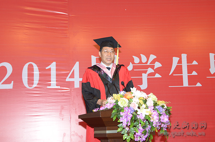 典礼在雄壮的国歌声中开幕。马连湘发表了热情洋溢的讲话,给广大毕业生上最后的一课。他代表学校党委和行政,向圆满完成学业的2014届全体毕业生同学表示热烈祝贺,向参加毕业典礼的学生家长们表示诚挚欢迎,向为同学们成长成才付出心血与汗水的老师们表示衷心感谢。