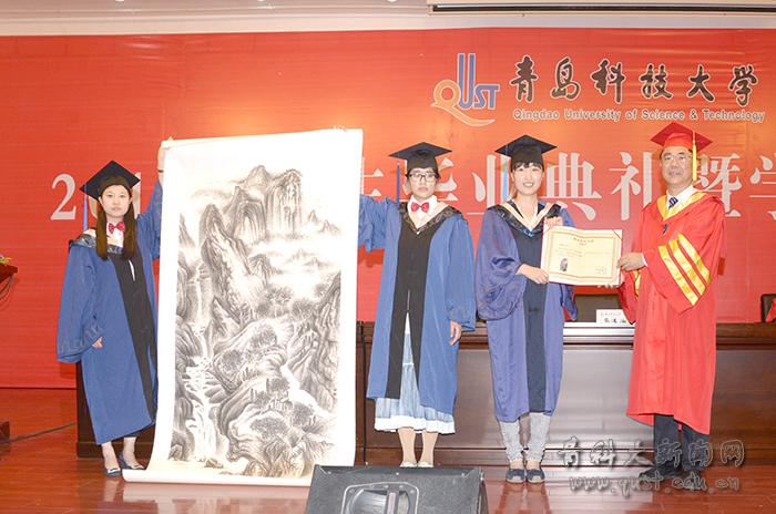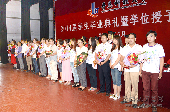 在研究生毕业典礼上,副校长李庆领宣读了2014年校级优秀博士、硕士学位论文获奖研究生及指导教师的表彰决定,副校长刘光烨宣读了校学位评定委员会关于授予博士、硕士学位的决议,副校长张淑华宣读了2014年省级、校级优秀毕业生的表彰决定,副校长韦殿华宣读了第六届学术之星的表彰决定。在高密校区毕业典礼上,副校长王文哲宣读了《关于表彰2014届省级优秀毕业生的决定》。在崂山校区和四方校区毕业典礼上,李庆领、张淑华分别宣读了《beat365官方网站学位评定委员会关于授予学士学位的决定》、《关于表彰2014届省级优秀毕业生的决定》。主席台就坐的领导、教师代表分别为获奖毕业生和荣获“我最喜爱的老师”称号的教师颁发了证书和奖牌,毕业生代表为获得“我最喜爱的老师”称号的老师献花。在嘹亮的校歌声中,马连湘为博士毕业生、硕士留学生、省级本科优秀毕业生颁发证书,拨正流苏;在主席台就座的领导和教师代表按专业一一给身着学位服的毕业生颁发证书,拨正流苏。